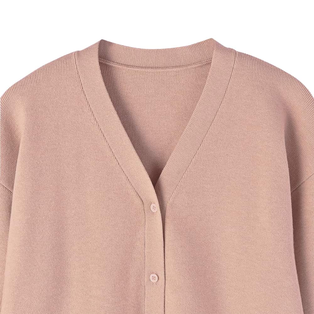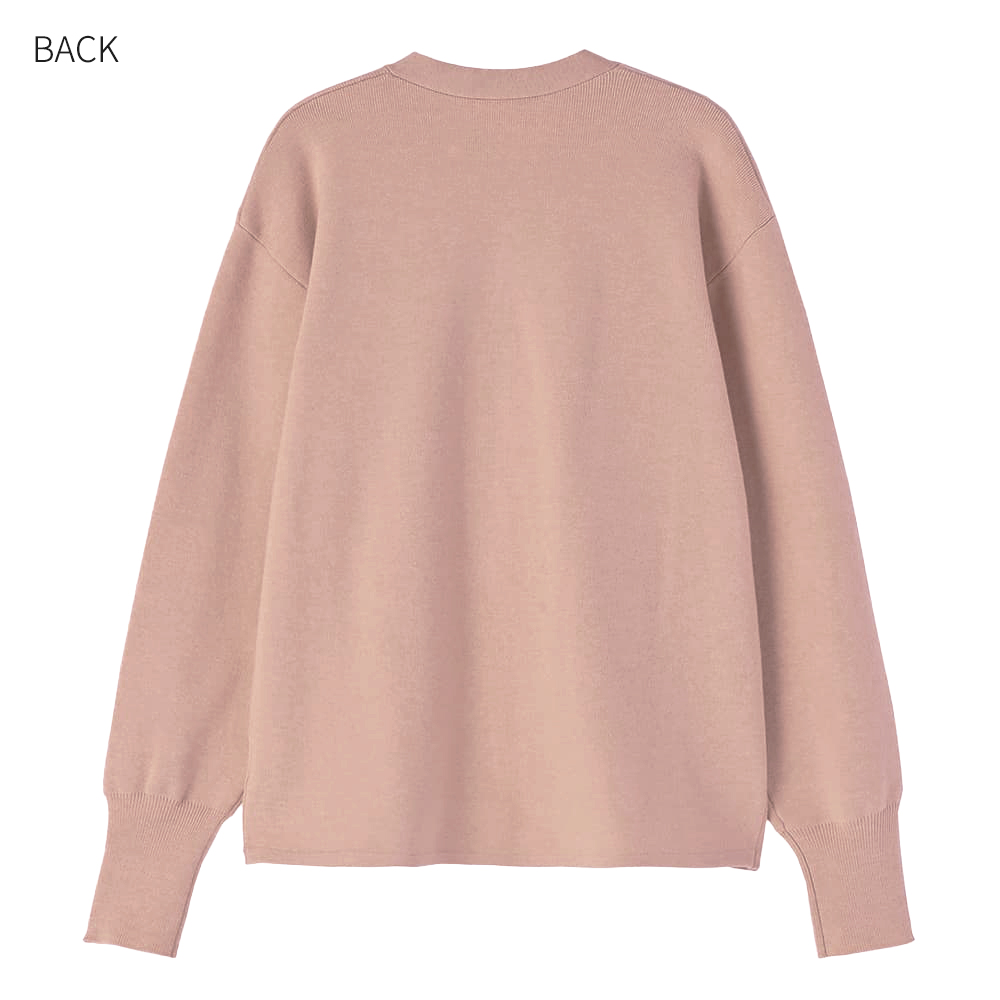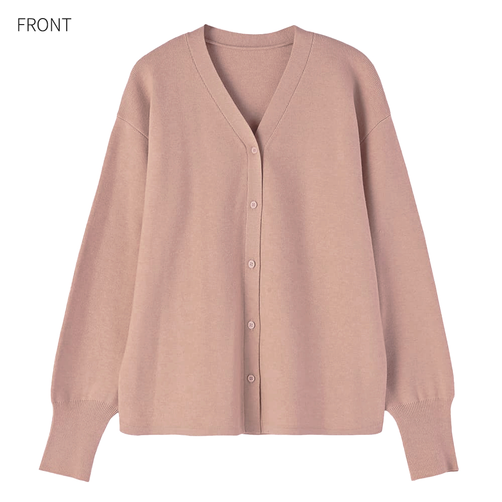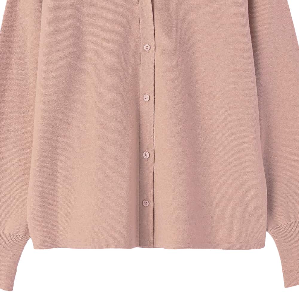 前を閉じてVネックトップス/前を開けてカーディガン、の2wayで使うことができる、大人気ニットに2026年の幕開けを彩る大人ピンクが登場。今からすぐに着れて春の気分を先取りしつつ→実際の春にも使えるコスパの良い先取りです。