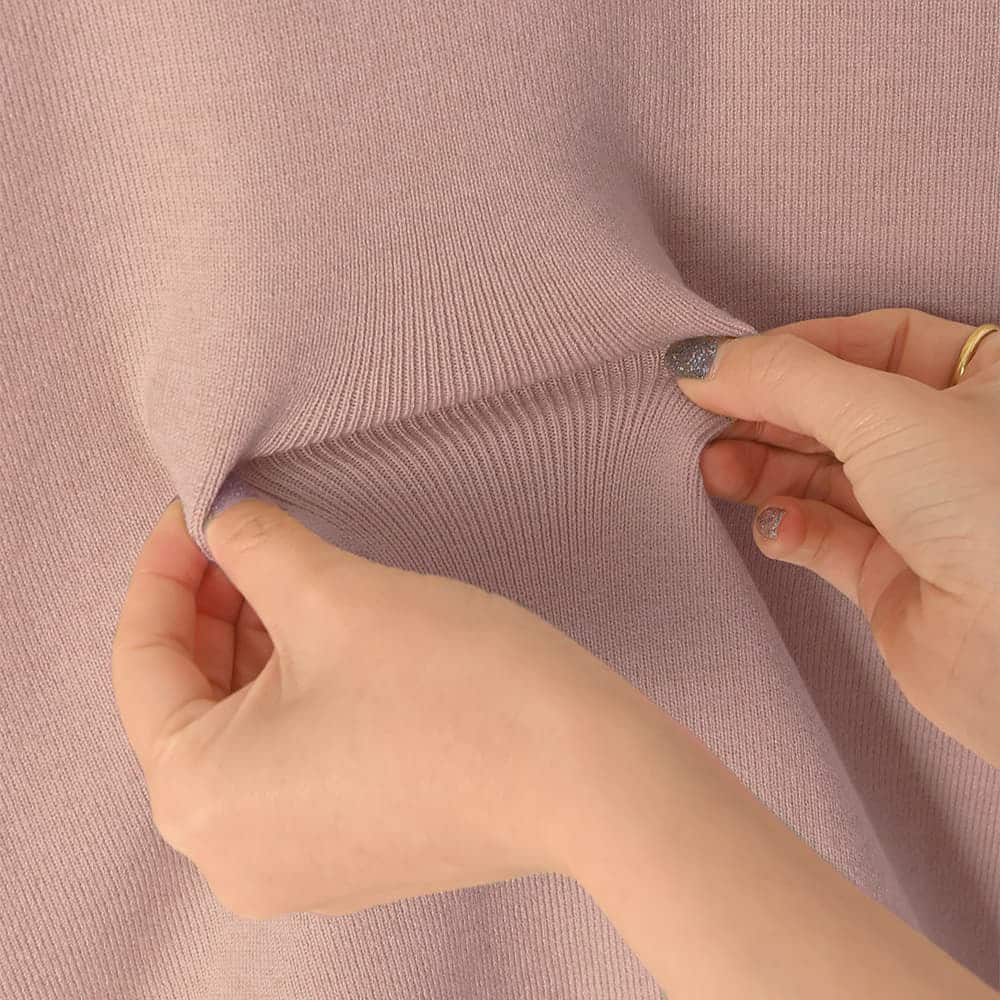 ◆肌触り:その名の通り、しっとり感とモッチリ感が同居した気持ちの良い肌触り。チクチク感とは無縁で体型カバー効果も高いと、お客様からのご好評コメントをたくさんいただいています。