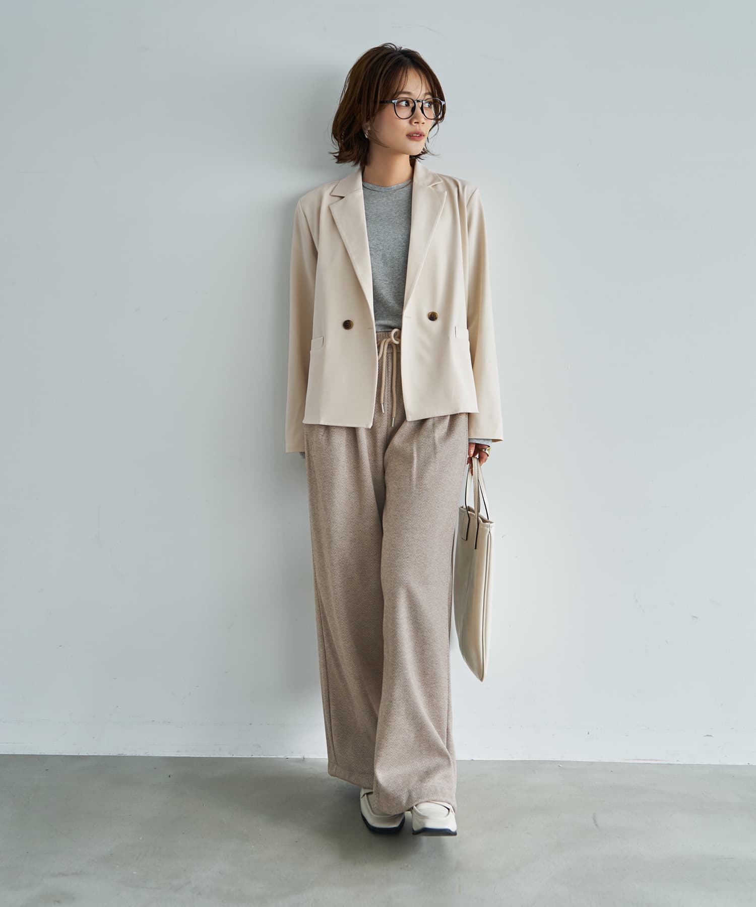 この生地でジャケット!? という新鮮さが◎堅苦しさが無く軽量な着心地&お手入れ簡単全方位から見てオシャレな新感覚ジャケット◆1/8インスタライブご紹介商品◆アーカイブのご視聴はこちらから→【2026/1/8ライブ】【この商品の特徴】しっかりとしたブラウス生地のような、軽くしなやかな生地で作られた新感覚ジャケット。とにかくラクに『ある程度のきちんと感が欲しい』という方にピッタリなアイテムです。正面から見た感じはキレイめで上品ながらも、生地の柔らかな動きや前後差を大きく付けた丈感、背面のオシャレなタックデザインなどがオシャレにこなれた印象。『キレイめ感を絶妙に崩す』という上級おしゃれテクが、羽織るだけで簡単に叶うデザインになっています。◆生地に厚みが無いためスッキリとしており、身体も薄く・華奢に見える着痩せ効果があります。◆ジャケットを着ているとは思えないラクな着心地。動きやすく、肩凝りが酷い方などにも◎です。◆着る人の体型を問わないゆったりめのサイズ感。落ち感があるためシルエットは大きくならず、その方の体型に応じたスッキリフォルムになります。◆前側は長すぎない丈感で、最近のボトムス全般とバランスがとりやすい長さ。前後で差を付けた背面はヒップが隠れる長さがあり、後ろ姿をオシャレにカバーできます。◆春用カーディガン感覚で気軽に羽織れる生地厚。冬用コートの下に着れるのはもちろん、春のトレンチコート系をはじめとする軽アウターの下にも着れるスッキリ感です。◆正統派ジャケットよりも着用温度感は低いため、更年期などですぐに暑くなる方のジャケットとしても適役です。【さらにプラス情報】◆暖かさ:とくに暖かい生地ではなく、春用カーディガン程度の温度感です。◆冬場の着用:中にニットを着たりなど暖かい重ね着をして、冬コートを着用すれば十分に使用できます。◆季節感:季節感は問わない生地なので、お好きなタイミングでご着用いただけます。◆厚み:ブラウス生地とはいっても薄手のものではなく、キレイめワンピースも作れるような安心感のある軽やかさ。さらに襟やポケットなどの複数箇所で生地が二重になるため、着用感は割としっかりしています。◆ゆとり具合:中にハイゲージ系ニットを着ても余裕がある感じの、十分なゆとりがあります。◆合わせインナー:カットソー系、ブラウス系、ニット系など、普通のジャケットと同じ考え方でOKです。◆ボトムス:スカートでもパンツでも合います。ワンピース合わせも大丈夫です。◆オケージョンやセレモニー:見た目は普通にジャケット感がありますので、とくに問題は無いと思います。ただし生地が軽やかなので、正統派ジャケットのような暖かさはありません。◆シワ:できにくい生地なので、基本的にアイロン掛けは不要です。◆静電気:とくに発生しやすい生地ではありませんが、程度の差はその方の帯電体質具合や合わせアイテムなどによりますのと、冬場は乾燥でどうしても…というところはありますので、もしも気になる場合はエレガードなどの静電気防止スプレー等でご対処ください。【その他の仕様などの情報】◆着用時期:10-5月頃が基準(真冬は判断が分かれる)◆サイズ感:ゆとりのあるサイズ感(Lサイズ体型にも対応)◆丈感:前は脚の付け根程度の丈感/背面はヒップが隠れる長さ◆シルエット:ストレート◆襟:テーラード◆肩幅:広め◆アームホール:やや広め◆袖幅:普通◆袖丈:長袖(指の付け根が隠れる長さ)◆袖口:何もなし◆袖のたくし上げ:一時的には可能(動けば落ちてくる)◆厚み:やや薄手(ブラウス生地としては厚い)◆柔らかさ:しなやかさの中にハリ感が共存◆肌触り:スルスル・サラサラした感じ◆着用ジワ:できにくい◆毛羽立ち:できにくい◆伸縮性:ややあり◆光沢感:なし◆透け感:なし◆スリット:両サイドにあり◆着脱:フロントボタン開き/ボタン1段/ダブル合わせ◆ボタン:すりガラス質感の樹脂素材/ベージュ-ブラウン系マーブル模様◆ポケット:フロント左右にあり◆裏地:なし(肌離れ、生地滑り良好)◆手洗い:可能◆アイロン:不要◆スチーマー:使用OK【お色について】◆アッシュブラウン:赤味を持たないアッサリとした印象の明るめブラウン。ブランドによっては「カーキ」と表現することもある、ブラウン系カーキ(グリーン味無し)カラーです。◆ライトベージュ:エクリュより少し色味感があるかな?という感じの、白っぽい感じのベージュカラー。赤味系ではなくイエロー系ベージュですが、かなり明るい(薄い)ためその色素感はあまり感じません(クリーム色とは異なります)。【SNS用ハッシュタグ】#236063 ブラウス生地の背面タックしなやかジャケット(このハッシュタグでInstagramなどSNS内で検索をしますと、こちらをお持ちのお客様のご投稿があれば、簡単に見つけてご覧いただくことができます)