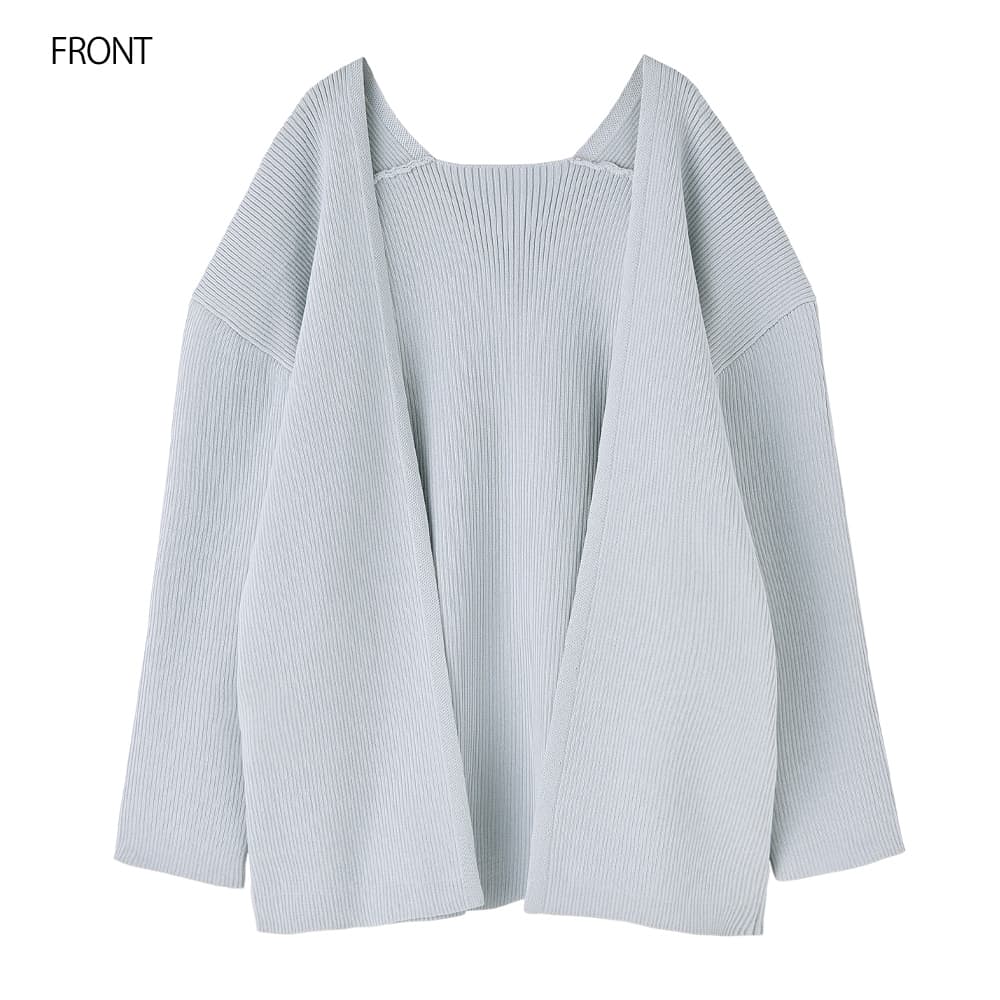 シャリ感のある素材を使用した、リブ編みのトッパー型カーディガン。ボタンがないためスッキリと着れて、スタイリッシュ系にもカジュアル系にも使えるデザインです。