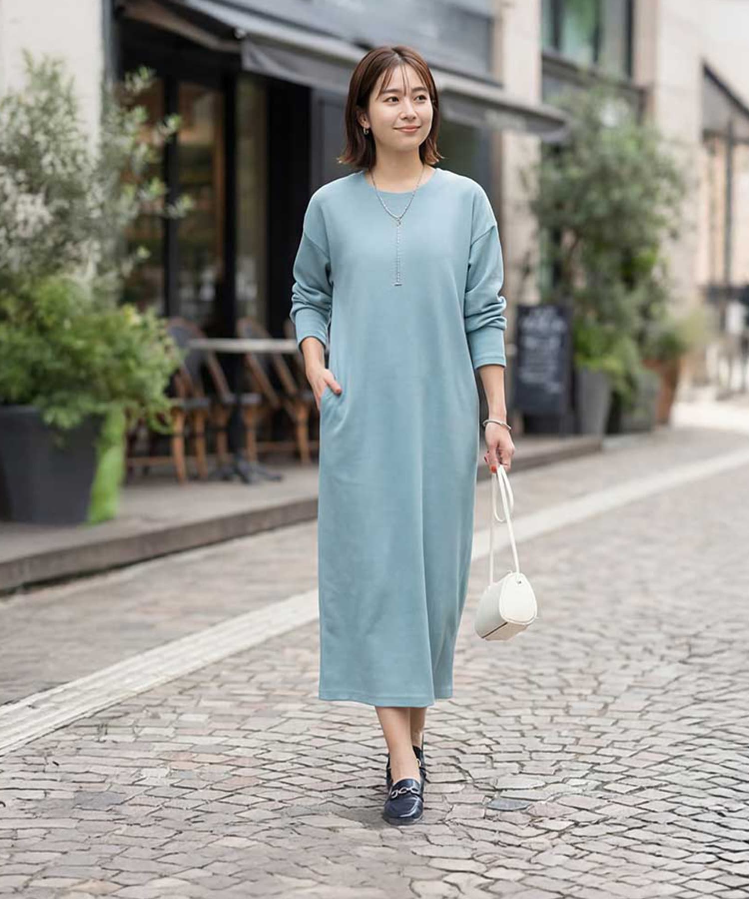 【肌に嬉しいコットン95%素材】シンプルだからこそ奥が深いを体現STYLE DELI 15年の経験が詰まったこだわりのカットソーワンピース ◆3/26インスタライブご紹介商品◆アーカイブのご視聴はこちらから→【2026/3/26ライブ】【このワンピースの概要】 厳選された生地を使い、シンプルに仕上げたリブ生地カットソーのIラインワンピース。シンプルなワンピースは安価なものを含めて世の中に沢山ありますが、思想無く作られたものは・パジャマに見える・地味に見える・貧乏くさく見えるなどの失敗パターンを生むのがこういったワンピースの奥深いところ。「これならもっと安い価格でも買える」などと思いがちですが、どれも同じに見えてまったく違うからこそ選び甲斐、作り甲斐があるというものです。きちんと作られていれば洗練さに格段の差が出ますので、ぜひ15年に及ぶSTYLE DELIの経験が詰まった一枚をお楽しみください。【このワンピースの特徴】 ◆人気のコットン素材+ストレッチ素材5%入り◆厚すぎずに暑くない、適度なしっかり感◆カジュアル過ぎない雰囲気が大人に◎◆オーバーサイズではないゆったり感◆シンプルで素材の良さが引き立つデザイン◆キレイなIラインでストンとした形◆首詰まりではない開き加減◆便利な両サイドポケット付き◆ジャケット着用もOK◆キレイめにもカジュアルにもコーデ可能◆スニーカー合わせもカワイイ◆一枚で着てサマになる◆シワや質感劣化がおきにくい素材◆肉感カバー効果も優秀【このワンピースの詳細】 「今日は何を着るかを決められない!」―そんな日にも頭からかぶり、着用するだけでサマになるIラインのワンピース。何故サマになるかというと、厳選された生地の質感や完璧に計算されたフォルム、細部のあしらいなどに工夫とコダワリが詰まっているから。という当店ならではのラクちんワンピースになっています。◆生地:厚ぼったさや暑さのない程度にしっかりとした、高級感のあるリブ生地を使用。表面はサーマル生地風のサッパリ感と凹凸があり、裏面はサラッとしてフラットなスムース質感。肌離れが良く肉感カバー効果も高いという特徴を持ちます。◆季節感:着る季節はとくに問わず、いつでも使用が可能。ご自分が暑い/寒いと思わなければどのタイミングでもOKです。◆丈感:表記の着丈は平置き採寸時のマスターサンプルの寸法です。着用時は重力によりプラス3cm程度の長さになり、01サイズは120cmが123cm程度の見え感、02サイズは125cmが128cm程度の見え感になります。◆雰囲気:質感に品のあるリブカットソーを使用しているため、カジュアル過ぎないところが大人に◎ キレイめとカジュアルの中間程度の雰囲気なので、コーディネート次第でどちらに寄せることもできます。キレイめにすればオフィスでも着用OKです。◆着こなし:ジャケット着用=できます/中にシャツを着る=できます/下にレギンスやパンツを穿く=お好みでやってもいいと思います/ベルトをする=お好みでやってもいいと思います/ベストを重ねる=できます(ただしコンパクトなベストは×)/シャツを羽織る=できます◆体型カバー:カットソーの中ではかなり肉感を拾いづらく、ある程度までのボリュームであれば下腹のポッコリやヒップの大きさ、腰張りなどはカバーできます。◆ペチコート:無しでキレイに着用できる生地です。お好みでプラスするぶんには良いと思います。【その他の仕様などの情報】 ◆着用時期:夏以外(真冬はお好みによる)◆サイズ感:ゆとりのあるサイズ感(Lサイズ体型にも対応)◆丈感:足首を見せる丈感が基準(丈感は問わずにカワイイ)◆シルエット:Iライン◆首元:開きのあるクルーネック(鎖骨下3-4cmの開き加減)◆肩幅:問わないタイプ(ドロップショルダー)◆アームホール:広め◆袖幅:広め◆袖丈:長袖(手の甲が隠れる長さ)◆袖口:何もなし◆袖のたくし上げ:可能◆厚み:普通◆柔らかさ:ハリ感+着やすいしなやかさ(非やわらかい系)◆肌触り:表面はサッパリ/裏面はサラッとしてスムース◆着用ジワ:できにくい◆毛羽立ち:できにくい◆伸縮性:あり◆光沢感:なし◆透け感:なし◆スリット:なし◆ボタンやファスナー:なし(かぶり着タイプ)◆ポケット:両サイドにあり◆裏地:なし◆手洗い:可能◆裾上げ:お直しに出していただけます◆アイロン:不要◆スチーマー:使用OK【お色について】 ◆ブラック:定番的な通常のブラックです。◆ライトブルー:ターコイズ系の明るいブルーです。【SNS用ハッシュタグ】 #236094リブ生地relaxストレートワンピース(このハッシュタグでInstagramなどSNS内で検索をしますと、こちらをお持ちのお客様のご投稿があれば、簡単に見つけてご覧いただくことができます)