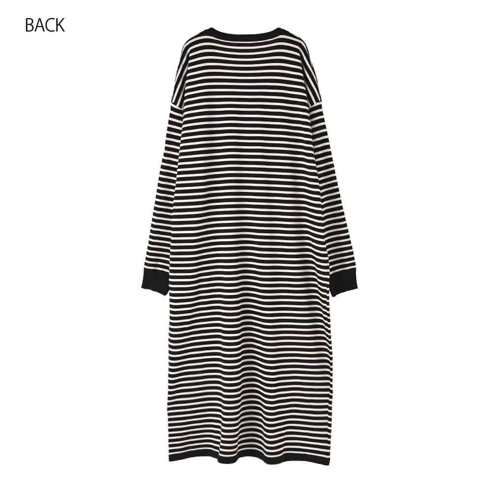 ◆どのような丈感で着ても素敵なデザイン。ニットワンピースなので着用すると重力で下がり、表示の着丈寸法よりも長くなります(見た目丈感123-4cm程度)。