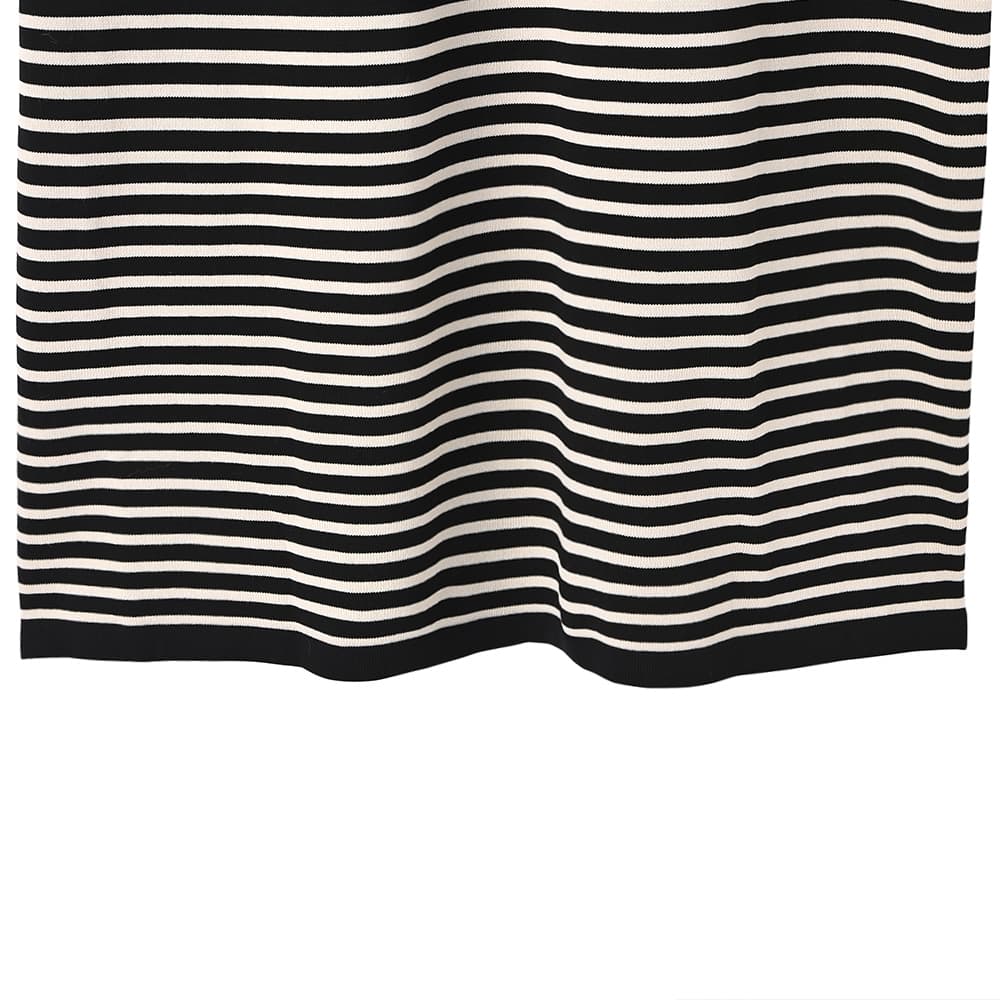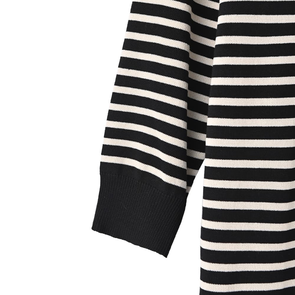 ◆ブラックミックス:通常の定番的な黒をベースに、生成り色のエコバッグのようなごく淡いベージュ(白っぽい)の線が入ったボーダー柄です。※使用してる糸色は姉妹商品『Vネックトリミングボーダーワンピース/商品番号236154』と同じです。