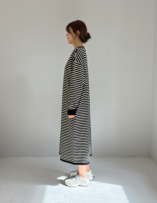 いつもはボーダー柄を苦手とする方にもお薦めできる、ホッコリしない、カジュアル過ぎない大人な雰囲気を持つボーダー柄のワンピース。スムースで品のある質感が素敵な、ヴィスコース素材を使用しています。