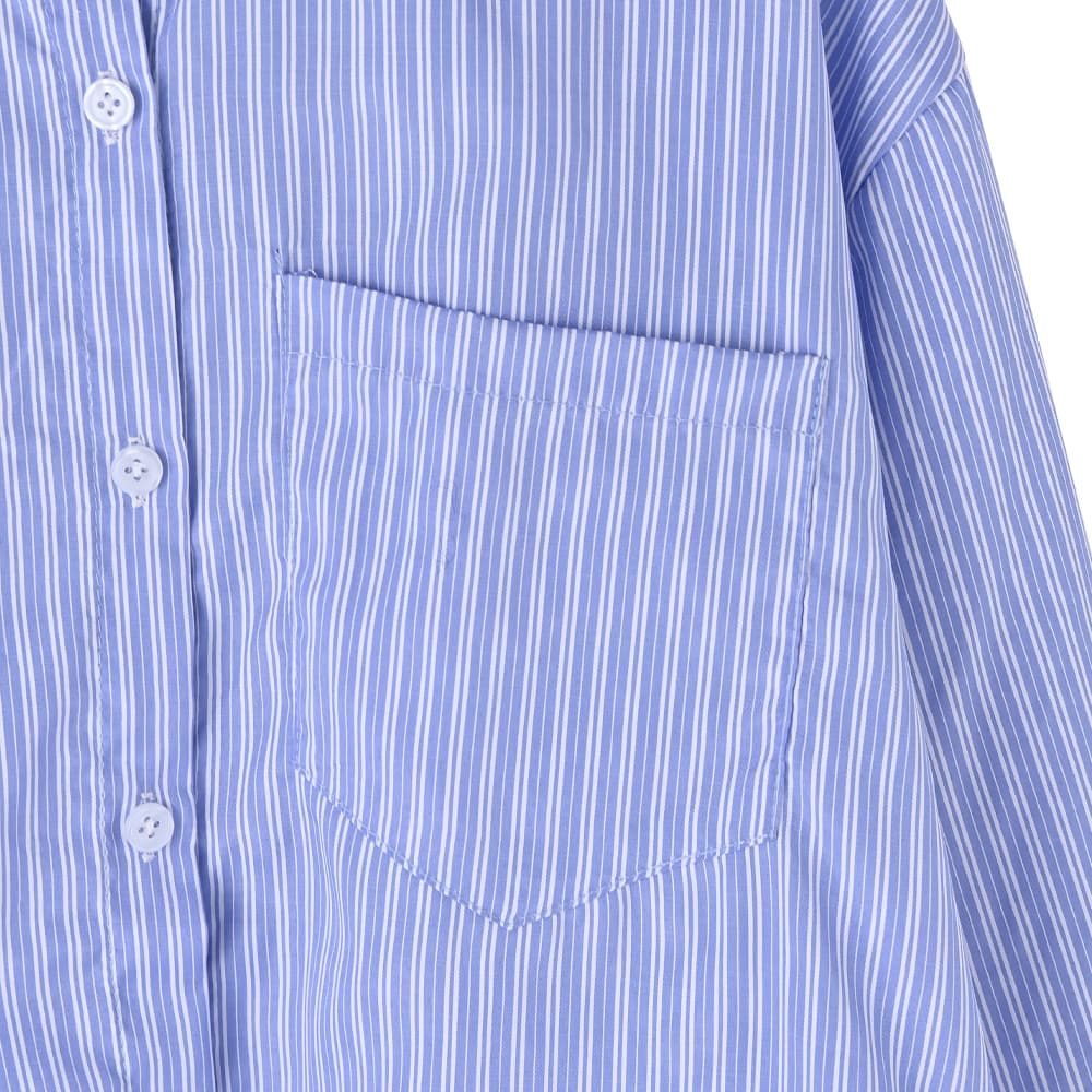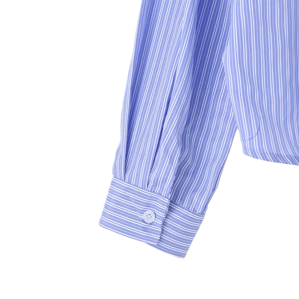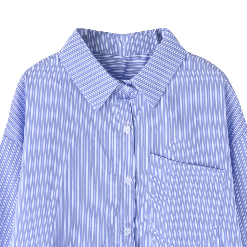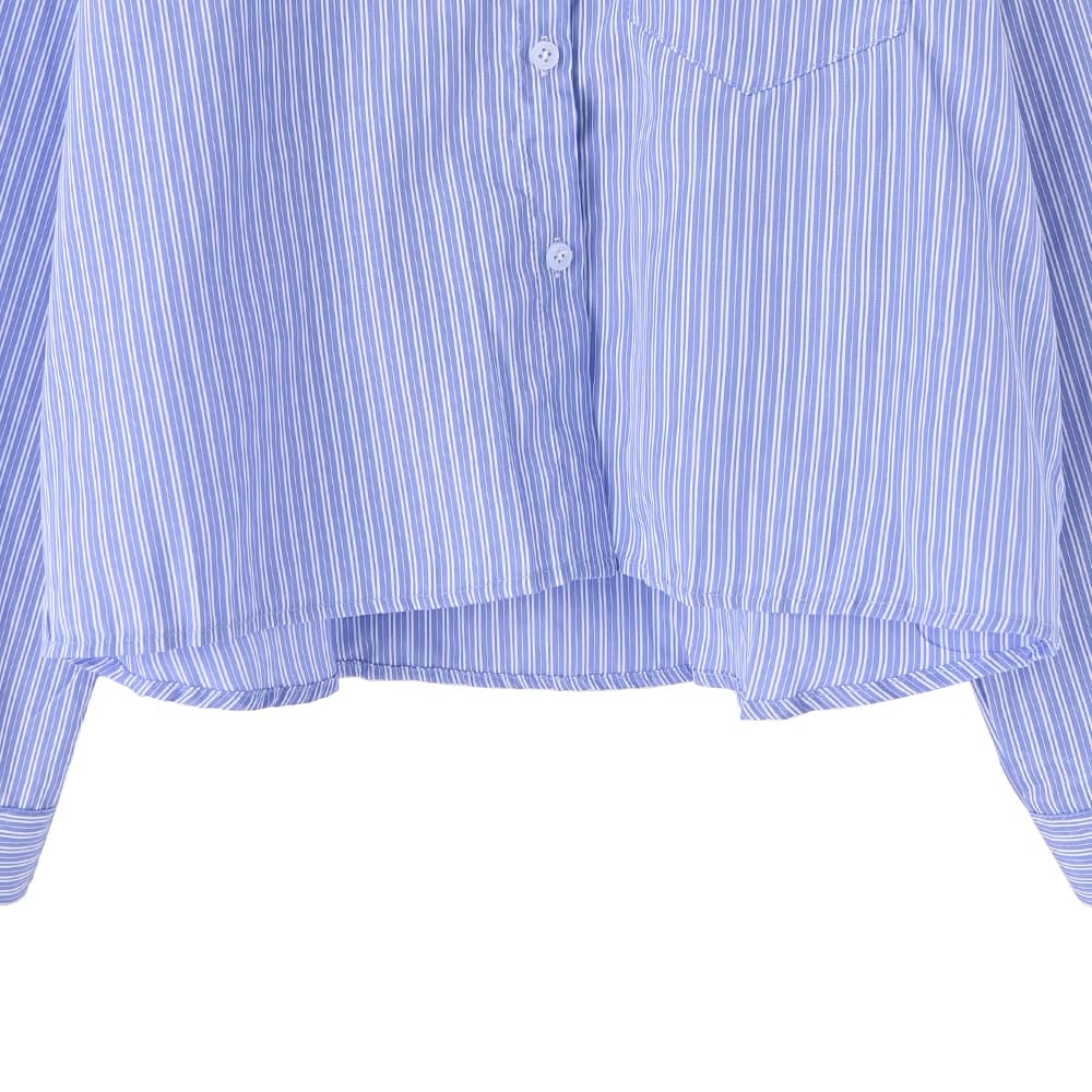 今どきボトムスのコーデがラクになる、最旬バランスの丈短ストライプシャツ◆3/26インスタライブご紹介商品◆アーカイブのご視聴はこちらから→【2026/3/26ライブ】【この商品の特徴】トレンドのショート丈で今どきボトムスとの相性が良い、軽やかな質感のストライプ柄シャツ。単純な単調ストライプではなく、太い線と細い線を細かく配置した柄感がオシャレな印象です。裾を入れるか・出すかで悩まずに、即バランスがキマるのも便利。生地は薄手でスッキリとしているため、初夏まで爽やかに使うことができます。◆生地:シャツ生地の中では薄手で涼しさのあるタイプ/ハリ感はあるため形がキレイに出る/アイロンは不要、スチーマーや霧吹きでOK◆季節感:見た目の季節感は問わない/薄手なので着用体感は春夏向き/冬場はニットなどの下に着る感じの重ね着メイン/夏場の長袖としても向く◆ボトムス:スカートでもパンツでもOK/ボリュームのあるボトムスとも合う◆着こなし:前を開けてノースリーブやワンピース、サロペットやジャンスカの羽織りにすることもできる/首元は開けても閉めてもどちらでもカワイイ◆重ね着:ジャケットやベスト、ジレ合わせなどもOK【ほか商品との比較】比較商品:【selection】ストライプ柄立体タックショートシャツ(商品番号236098)◆やはり質感として価格の差は出ており、あちらはひと目で『高いシャツ生地』だとわかります。◆デザイン性の高さと構造の複雑さが異なります。こちらは『ベーシックな形のシャツを短くしたもの』ですが、あちらは『デザイン性のある立体感シャツ』になります。◆共通項はシャツ生地としては薄手でハリ感があることと、丈が短いことです。◆こちらは前を開けて羽織りシャツとしても使用することができます。◆何かの下に着る際(重ね着をする場合)の汎用性が高いのはこちらです。◆ストライプの柄感も異なり、こちらは2色編成ですが、あちらは3色の糸を使用していてより珍しさがあります。◆凝っていてデザイン性の高いものがお好きであれば→あちら。シンプルなものがお好きであれば→こちら。がお薦めです。服としての完成度やクラス感はやはりあちらの方が上にはなりますので、お好みでお選びください。【その他の仕様などの情報】◆着用時期:夏以外(冬場は重ね着で使用可)◆サイズ感:ゆったりめのサイズ感(Lサイズ体型にも対応)◆丈感:前はおヘソが隠れる丈感/背面は腰が隠れる長さ◆シルエット:ストレート◆首元:シャツ襟◆肩幅:広め(ドロップショルダー気味)◆アームホール:普通(とくに狭くも広くもない一般的な開き加減)◆袖幅:普通◆袖丈:長袖(手の甲にかかる長さ)◆袖口:カフス+ボタン1個あり◆袖のたくし上げ:手首と肘の中間まで可能◆厚み:シャツ生地の中では薄手◆柔らかさ:ハリ感と柔らかさが共存◆肌触り:サラサラッとして滑らかな感じ◆着用ジワ:できにくい◆毛羽立ち:できない◆伸縮性:なし◆光沢感:なし◆透け感:気にならない◆スリット:なし◆着脱:フロントボタン開き◆ボタン:白蝶貝パール調光沢ボタン(色:ホワイト)◆ポケット:左胸にあり◆手洗い:可能◆アイロン:不要◆スチーマー:使用OK【お色について】※白線部分は普通の一般的なホワイトで両色ともに共通です。◆ネイビー:インディゴデニムのような感じの、ダークブルー寄りな明るめのネイビーです。◆ライラックブルー:明るく薄いブルーにごく僅かな薄紫の色素を入れて、ブライト感を出したニュアンスブルーです。普通の薄いブルーよりも華やかな印象になります。※見た目にパープル感はありません。【SNS用ハッシュタグ】#236170サラサラ短めストライプ柄シャツ(このハッシュタグでInstagramなどSNS内で検索をしますと、こちらをお持ちのお客様のご投稿があれば、簡単に見つけてご覧いただくことができます)