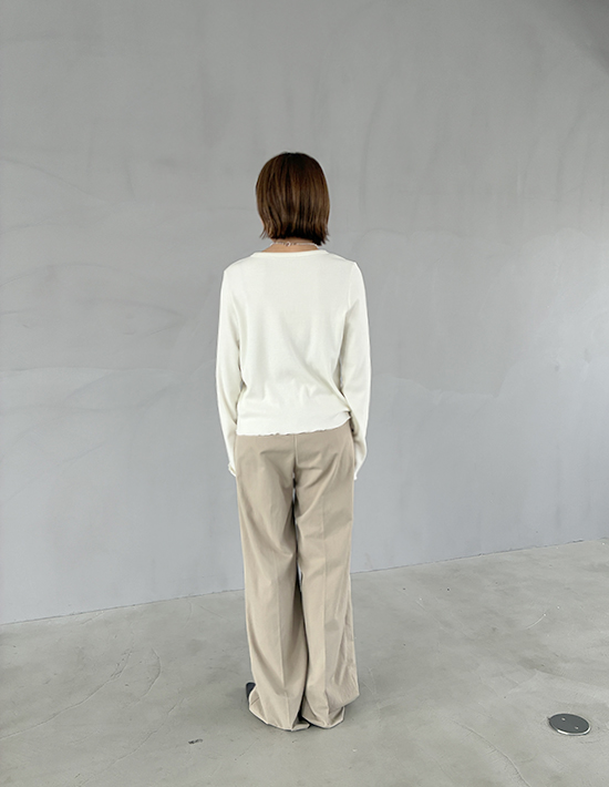 カジュアルじゃなくてキレイめ質感だから幅広い人に着こなしやすい、「色だけがチノパン」の伸縮性パンツ◆3/12インスタライブご紹介商品◆【このパンツの特徴】トレンドが静かに再熱しつつあるチノパンの雰囲気を、カジュアル感の無いスッキリ&スムースな生地で表現。色味はまさにチノパンですが、生地が薄くて柔らかく、キレイめなので幅広い方にマッチいたします。【他商品との比較】対象商品:内ゴム伸縮ストレートパンツ(サンドベージュ)/商品番号236130◆色味:あちらの方が少し深め(こちらの方が明るめ)◆生地やデザインの雰囲気:こちらの方がよりキレイめ◆合う物や使えるコーデ:どちらも同じ◆厚み:こちらの方が薄い(より夏に涼しい)◆サイズ感:あまり変わらない◆ウエスト:あちらはゴム入りで安心/こちらはゴム無しでスタイリッシュ◆脚幅:こちらの方が若干太い◆ストレッチ:どちらもあり◆丈感:あまり変わらない◆選ぶ基準:より明るく・キレイめな雰囲気のチノパン見えパンツが欲しければこちらがお薦めです。【その他の仕様などの情報】◆着用時期:3月下旬~10月末頃が目安◆サイズ感:表記通りのサイズ感/脚幅は広め◆丈感:最近の一般的なフルレングス◆シルエット:ストレートワイド◆ウエスト:ゴム無しスッキリタイプ◆ベルトループ:あり◆厚み:薄手寄り◆柔らかさ:柔らかさの中にハリ感が共存◆肌触り:サラサラでスッキリとした感じ◆着用ジワ:できにくい◆毛羽立ち:できにくい◆伸縮性:あり◆光沢感:なし◆透け感:なし◆スリット:なし◆着脱:フロントファスナー&上部ホックあり◆ポケット:両サイドにあり(ヒップポケットは飾りで使用不可)◆裏地:なし◆手洗い:可能◆裾上げ:お直しに出していただけます◆アイロン:不要◆スチーマー:使用OK【SNS用ハッシュタグ】#236176チノパン見え柔らかセミワイドパンツ(このハッシュタグでInstagramなどSNS内で検索をしますと、こちらをお持ちのお客様のご投稿があれば、簡単に見つけてご覧いただくことができます)