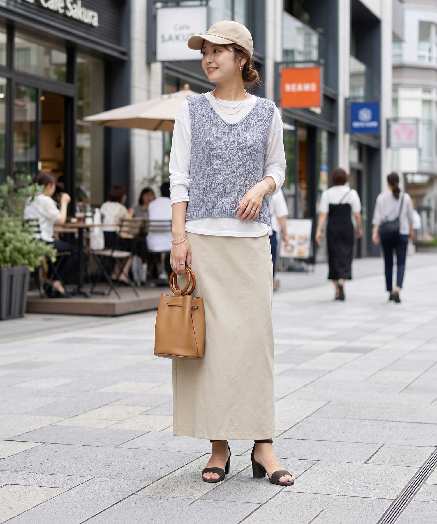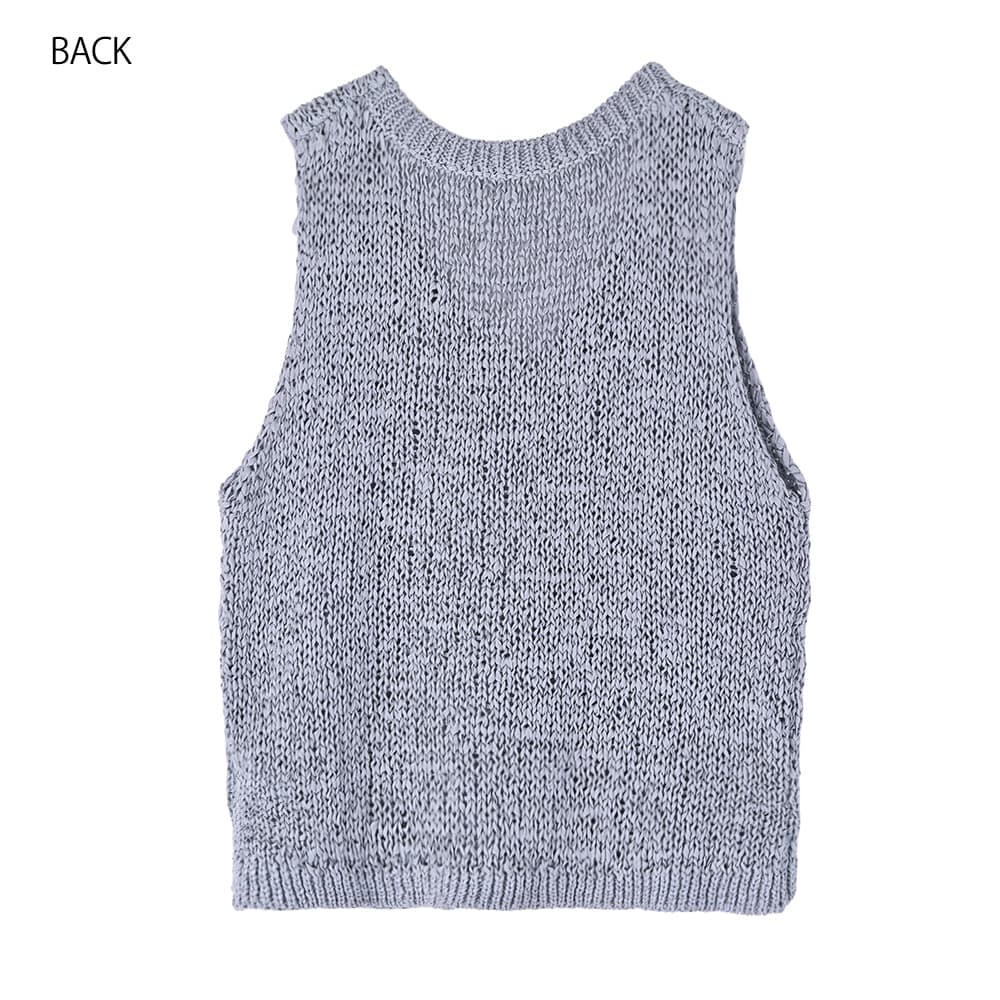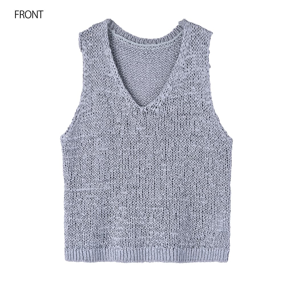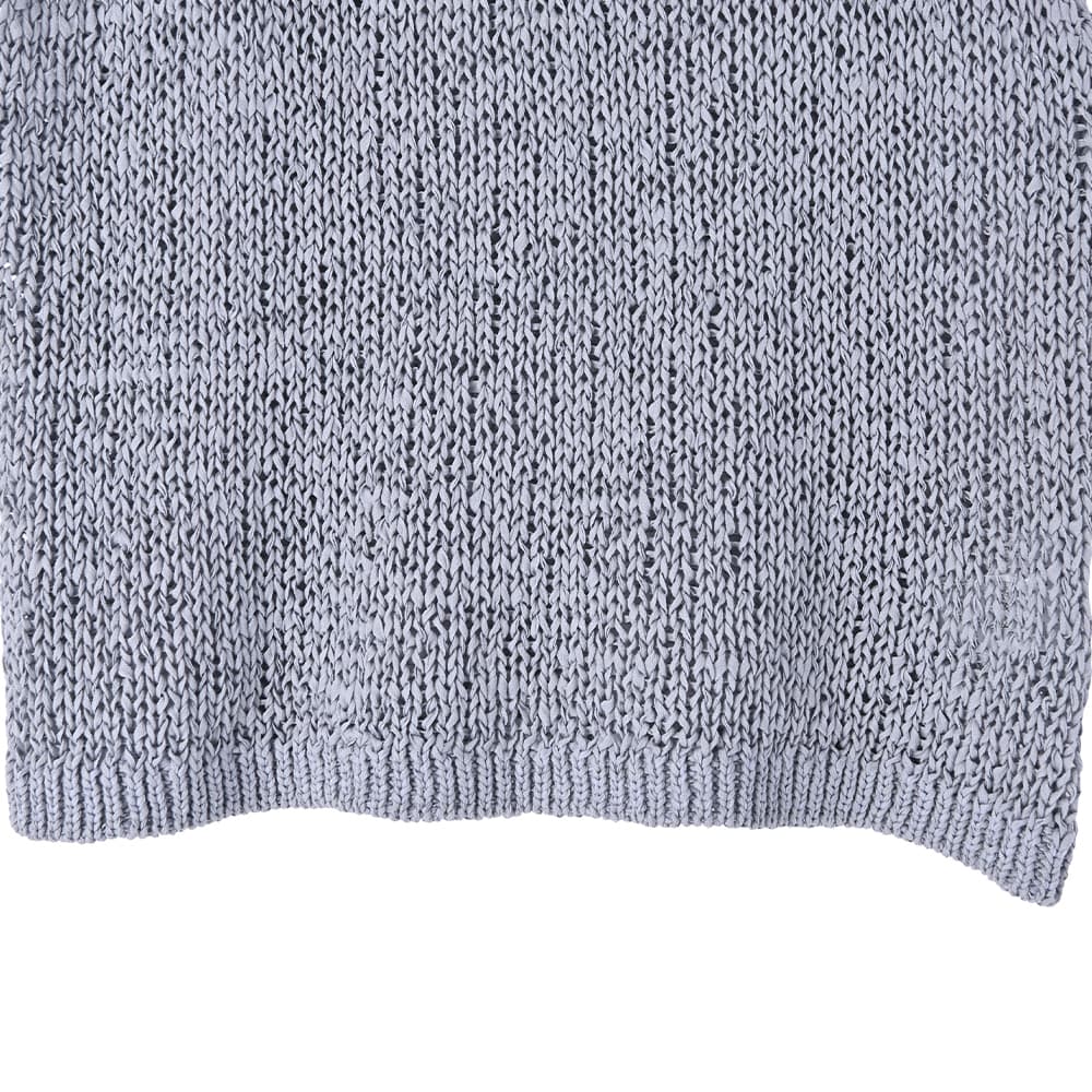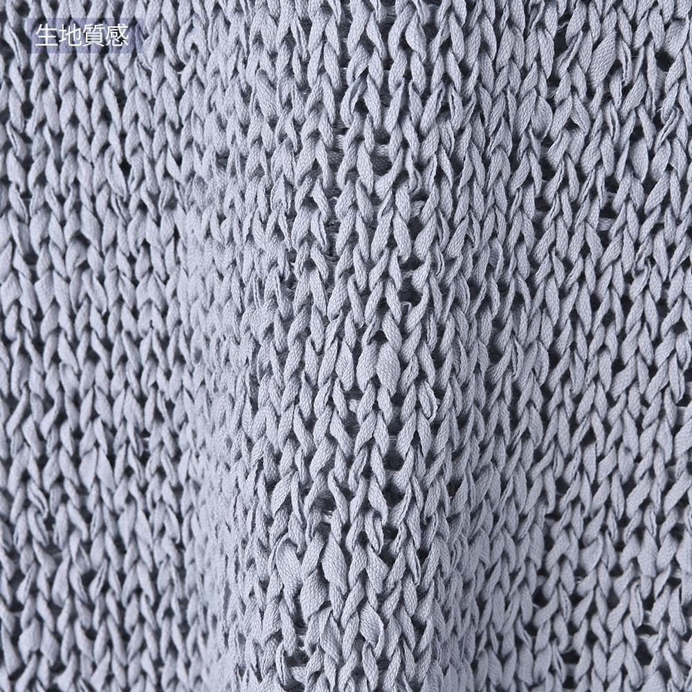 襟ぐりの形が選べる2way仕様で便利糸というより細いリボンを編んだような、ざっくりとした編み目がカワイイ夏ベスト◆4/23インスタライブご紹介商品◆【selectionシリーズが始動】国内のメジャーな大人ブランドやショップのアイテム制作を手掛けている、老舗メーカーさんが企画生産するアイテムをSTYLE DELI視点でセレクトしたnewシリーズ。ネットショップならではの買いやすい価格帯とは少し異なりますが、優れた品質で大人に相応しい雰囲気を持つアイテムを好む方に向けてご用意したシリーズです。その中でも、店頭で試着をしなくても失敗しにくく、着やすくてお薦めできるもの・高額過ぎないものを厳選。そうすることでオシャレの幅が広がって良いかなと考えましたので、STYLE DELIのアイテムとMIXして、大人ならではのオシャレをお楽しみいただければと思います。※こちらはセレクト商品になりますので、STYLE DELIのネームタグは付いておりません。また、他店や他ブランドでも取り扱いがあることがございます。【このベストの特徴】リボンのような平紐状の素材を編み上げた、質感がオシャレなサマーベスト。片面はVネック、もう片面はラウンドネックになっており、好きな方を前にして着れる2WAY仕様になっています。こういった見た目の素材は肌触りに硬さがあるのが普通ですが、これは柔らかで『しんなり』としていて着やすいのが特徴。緩い編み目の間に隙間があるため通気性が良く、サラッとした肌触りで涼しく着用することができます。 Vネックは普通に着ると胸の谷間がギリギリ見えない程度。下にインナーは必要ですが、これをトップスのように着て、上からジャケットやカーディガンを羽織ったりすることも可能です。【さらにプラス情報】◆インナー:中に着るものはノースリーブでも半袖や5分袖でもOK。ネックラインの形も選べるため、インナーのネックデザインに合わせて相性が良い方を選択することができます。◆合わせアイテム:スカートでもパンツでもOK。ワンピースの上に重ねるのもカワイイです。◆厚み:糸がリボン状で立体感があるため、形状としての厚みはそれなりにアリ。ただし着用感は(たくさんの隙間があるため)薄手なニットと同等の涼しさで、クッタリとしているので身体が厚く見えることはありません。【その他の仕様などの情報】◆着用時期:3-10月末頃が目安◆サイズ感:ゆとりのあるサイズ感(Lサイズ体型にも対応)◆丈感:前はおヘソが隠れる丈感/背面は腰が隠れる長さ◆シルエット:ストレート◆首元:Vネック/ラウンドネック◆肩幅:問わないタイプ◆アームホール:広め◆厚み:普通(着用温度感は薄手の衣類)◆柔らかさ:柔らかさの中にハリ感が共存◆肌触り:サラッとして肌離れが良い感じ◆着用ジワ:できない◆毛羽立ち:できない◆伸縮性:あり◆光沢感:なし◆透け感:少しあり◆ボタンやファスナー:なし(かぶり着タイプ)◆裏地:なし◆手洗い:可能◆アイロン:不要◆スチーマー:使用OK【お色について】◆ナチュラル:少しクリーム色がかった、ホワイト系ニュアンスカラー。明るく肌馴染みが良く、合わせやすいお色です。◆ニュアンスブルー:明るいブルーの彩度を落とし、微量のグレーとラベンダー色素を『味付け程度に』加えたような、雰囲気のある明るめなお色です。【SNS用ハッシュタグ】#236223コットンペーパーヤーンvネックベスト(このハッシュタグでInstagramなどSNS内で検索をしますと、こちらをお持ちのお客様のご投稿があれば、簡単に見つけてご覧いただくことができます)