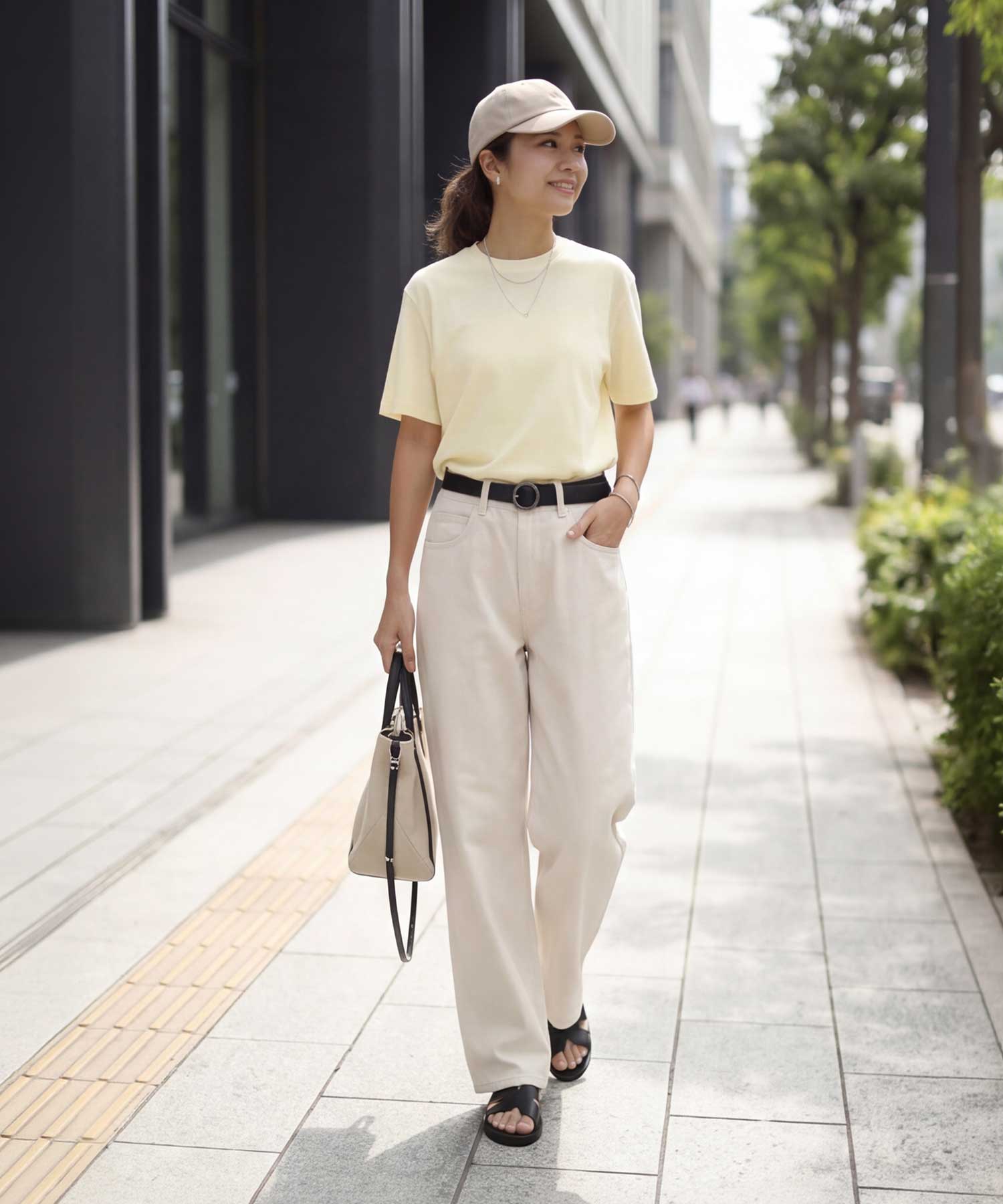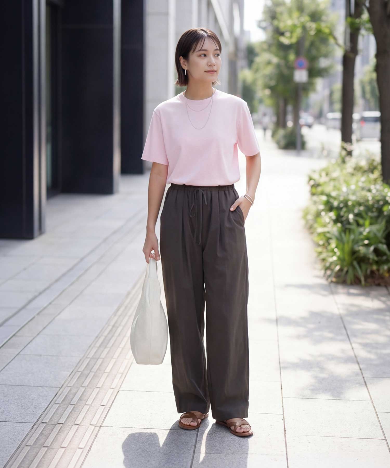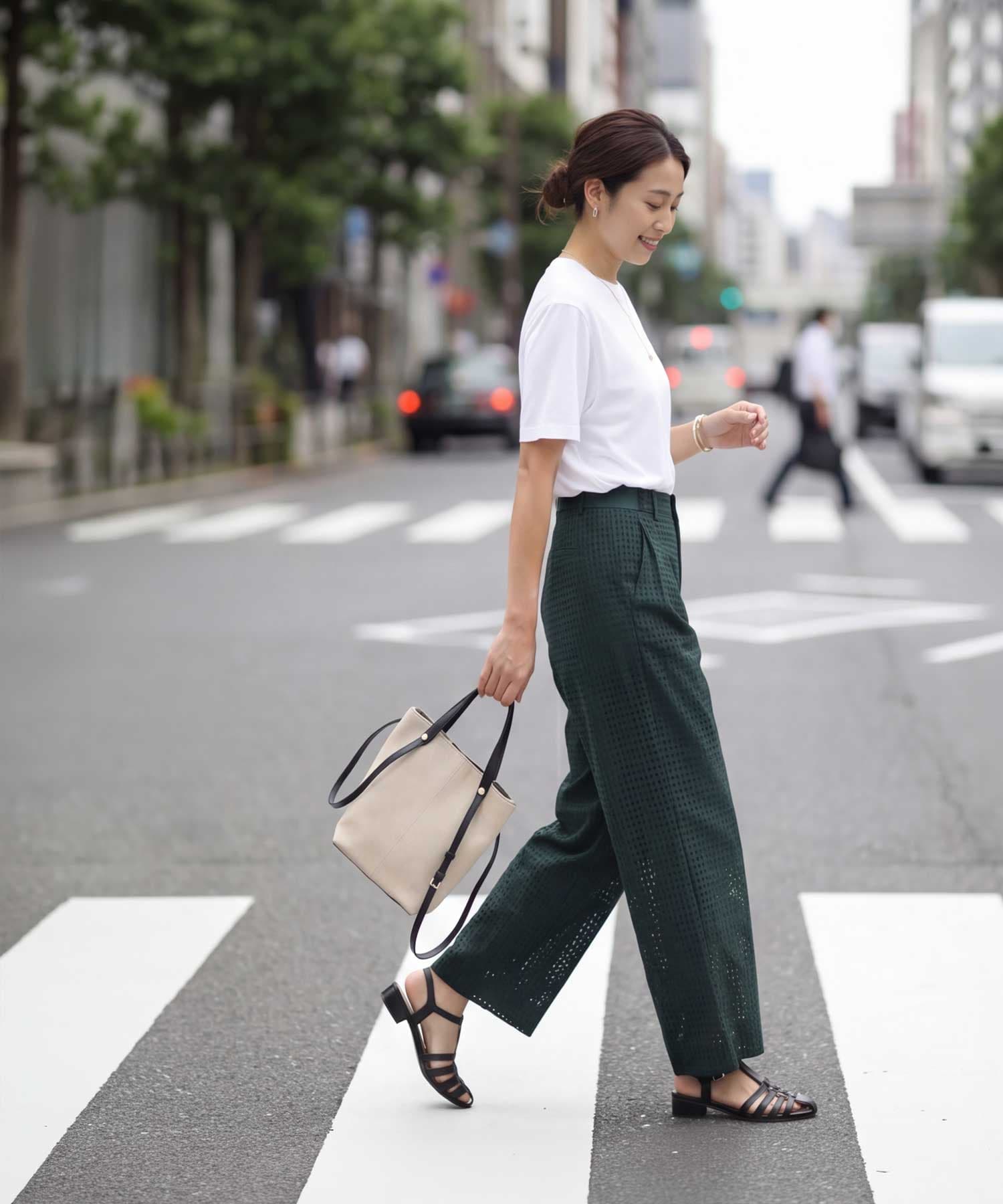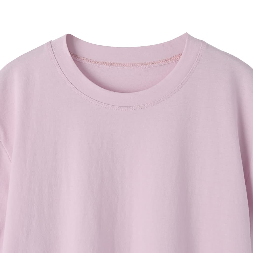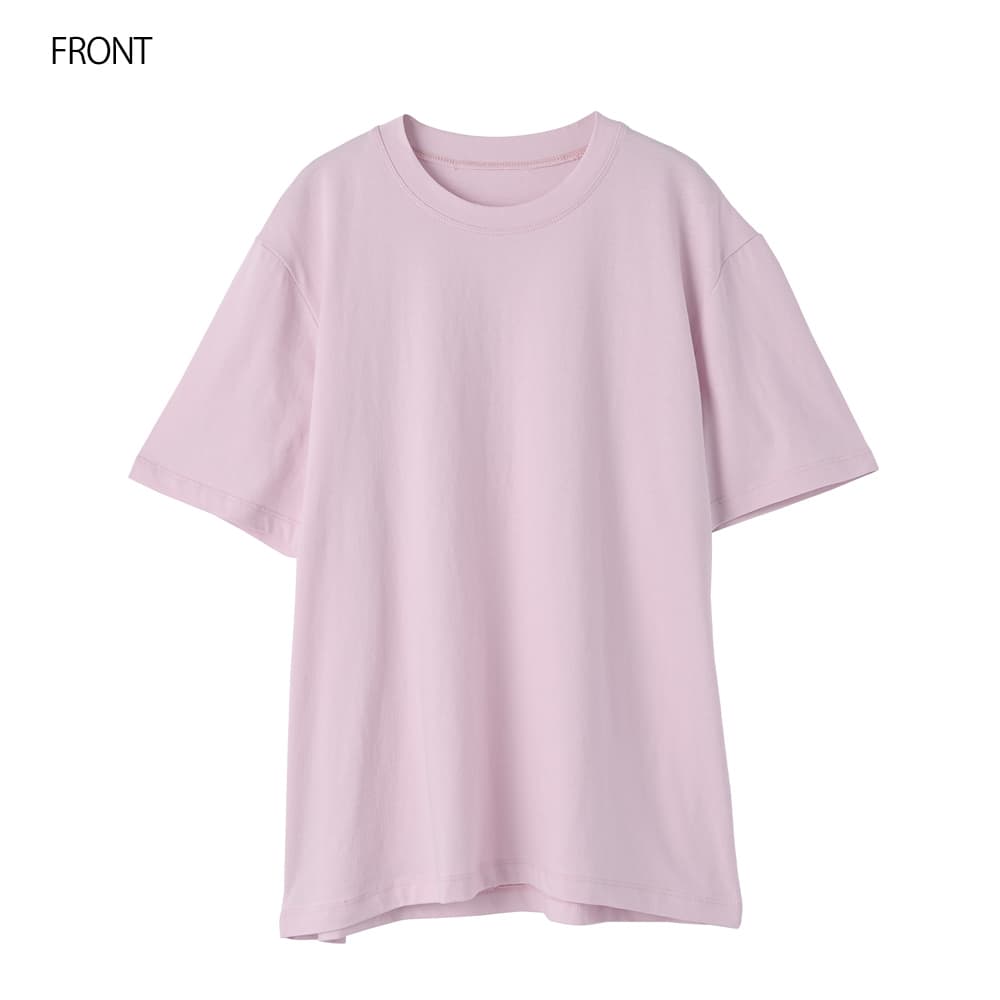 体型のボリュームが気になる方にも安心◎Lサイズ相当のゆとりがあるけどBigじゃないスッキリとした薄手スムースな涼しいTシャツ◆4/30インスタライブご紹介商品◆【この商品の特徴】◆薄くてキメが細かくスムースな質感◆柔らかくなめらかでサラッとした肌触り◆涼しさのある着心地◆Lサイズ相当のゆとりあり◆普通の半袖よりも少し長めの半袖◆大きくはないシルエット◆リブが無くカジュアル過ぎない大人仕様◆質感に品があり女性らしい雰囲気◆ジャケットの中に着てもスッキリ【こんな方にお薦め】◆Tシャツの硬さや厚さが苦手な方◆カジュアル系Tシャツが似合わない方◆当店の他のTシャツでサイズ感が心配な方◆ジャケットのインナーに向くTシャツをお探しの方◆あまり首開きが広いものは避けたい方◆かといって首が詰まり過ぎなのも嫌な方◆リブ生地の襟ぐりが似合わない方◆普通のTシャツだと夏に暑い方◆ドロップショルダーが似合わない方ほか、当店の過去商品AS ITロゴTシャツのような薄さや柔らかさ、サイズ感がお好きな方にも向いていると思います。【この商品の詳細】Tシャツの中では薄手の部類に属する、軽やかでスムースな質感の無地Tシャツ。どこか女性らしさのある品のある質感で、ガシッとした硬さのあるカジュアルなTシャツが苦手な方にもお薦めです。肌当たりはなめらかで柔らかく、サラッとした感じ。薄いので涼しさもあり、Tシャツって結構暑いよね…と思っている方にも涼しくご着用いただけます。デザインとしては襟ぐりにリブを使用しておらず、なんとなくキレイめ感がありスッキリとした印象。ゆとりはありますがへんに大きくはなく、ジャケットやカーディガン、サマーブルゾンや羽織りシャツのインナー用にも向いています。裾インやサロペットの中に着ることも可能です。【さらにプラス情報】◆肩:ドロップショルダー全盛の今は、けっこう珍しいセットインスリーブタイプ。キレイめな服が似合う方には相性が良い傾向にある肩デザインです。◆シワ:着用していれば気にならない程度に多少はできます。アイロン掛けは不要ですが、アイロンやスチーマーをかけると質感に高級感やキレイめ感が出るタイプ。ラフに仕上げるなら霧吹きでOKです。◆透け感:薄いTシャツにありがちな透け透け感はなく、自然な感じで『なんとなく透ける』程度。普通のTシャツと同等または少しだけ強いかな?くらいで、薄さの割には着やすい透け具合だと思います(※編み目が非常に細かいため)。そしてブラックは基本的に透けません。【その他の仕様などの情報】◆着用時期:夏を中心にお好みで通年◆サイズ感:ゆとりのあるサイズ感(Lサイズ体型にも対応)◆丈感:前は脚の付け根が隠れる丈感/背面はヒップの大部分が隠れる長さ◆シルエット:ストレート◆首元:詰まっていないクルーネック(鎖骨程度の開き加減)◆肩幅:広め◆アームホール:広め◆袖幅:やや広め◆袖丈:長めの半袖(肘上5cm程度の長さ)◆厚み:やや薄手◆柔らかさ:柔らかさの中に微かなハリ感が共存◆肌触り:サラッとスムースでなめらかな感じ◆着用ジワ:多少はできるが気にならない程度◆毛羽立ち:できにくい◆伸縮性:あり◆光沢感:なし◆透け感:ブラック以外は多少あり◆スリット:なし◆ボタンやファスナー:なし(かぶり着タイプ)◆手洗い:可能◆アイロン:不要◆スチーマー:使用OK【お色について】◆ブラック:定番的な通常のブラックです。◆ホワイト:一般的な白いブラウスのお色。イエロー味などの色味感は無いクリアな発色のホワイトです。◆ピンク:パステルとはまた異なる、柔らかく明るさのあるピンクです。ブルー味やラベンダー感などのクセは無い、純粋ピンク系のお色です。◆イエロー:彩度が弱めで柔らかい感じの明るいイエローです。【SNS用ハッシュタグ】#236233薄手スムースクルーネックtシャツ(このハッシュタグでInstagramなどSNS内で検索をしますと、こちらをお持ちのお客様のご投稿があれば、簡単に見つけてご覧いただくことができます)
