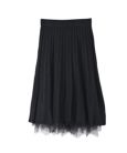 =1枚で2種類の異なる表情を楽しめる!ラメ入りニットチュールスカート=1枚で2つの表情を楽しめる、魔法のようなスカートが登場!特別な日にも、デイリーにも。歩くたびにふんわり揺れるニットプリーツと、軽やかでトレンド感のあるチュールスカート。リバーシブル仕様で、コーディネートの幅が広がります。どちらの表情も楽しめるこのスカートは、身に纏うだけで気分が上がる一枚です。細見え効果も抜群で、骨格や体型を問わずスタイルアップを叶えます。【こんな方におすすめです】・身長160cm以上の方・ヒップに厚みがある方・ウエストサイズが気になる方・骨格がしっかりしている方【商品について】・表側はラメ入りニットプリーツスカート、裏側はチュールスカートのリバーシブル仕様でお得感たっぷり!・表側のプリーツには7色のラメ糸が織り込まれ、動くたびに華やかなきらめきを演出。・Aラインのシルエットが女性らしい印象を与え、歩くたびにふんわり揺れるデザインです。・ウエストは全周ゴム仕様でストレスフリーな着心地。・ニット素材のスカートはヒップ部分にほどよくフィットし、裾に向かって広がるデザインで縦長&細見え効果抜群。腰周りのラインを自然にカバーします。・ミモレ丈のデザインで足首が見え、さらにスタイルアップ効果あり。・裏側はトレンド感のあるチュールギャザースカートで、さまざまなトップスに合わせやすく、幅広いスタイリングに対応します。表側はアクリル、ポリエステル、ナイロン素材のニットに7色のラメ糸を使用。裏側にはポリエステルチュール生地を採用しています。【おすすめのシーン】デイリー、オフィス、食事会、同窓会、女子会、旅行、公園スタイルなど【商品の詳細】着用時期:夏以外サイズ感:ジャストサイズ(ストレッチあり)丈感:ミモレ丈シルエット:Aライン、ギャザーシルエットタック:なしスリット:なし厚み:中肉柔らかさ:少しハリ感あり光沢感:あり着用時のしわ:なし伸縮性:ありボタン:なし裏地:なし(リバーシブル仕様)手洗い:可能アイロン:可能(低温アイロン推奨)【お色について】ブラック:定番のブラックに7色のラメ糸をプラス。華やかさと落ち着きを兼ね備えたカラーです。