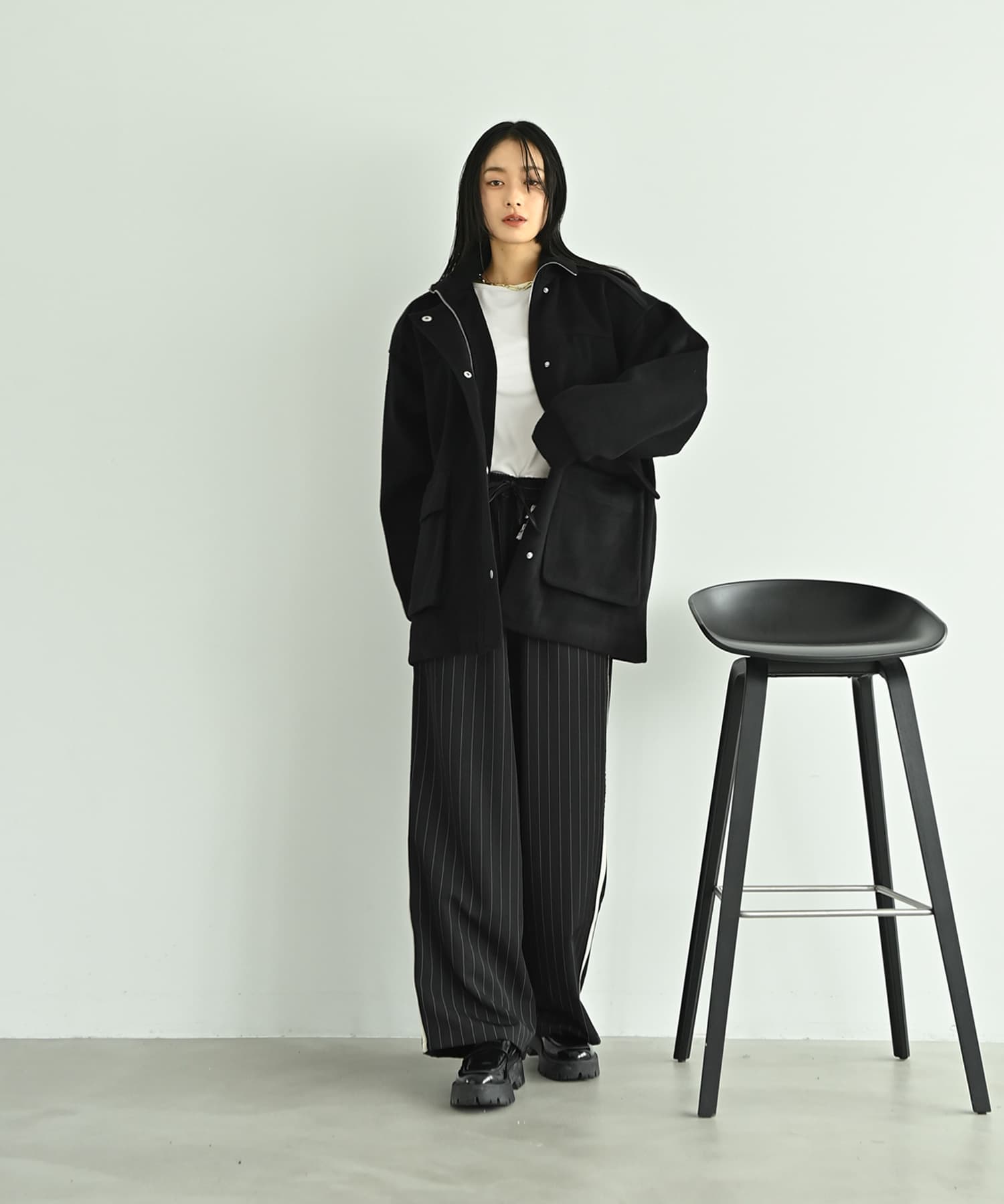 ・ハイネックトップス×ワイドパンツでモードな休日スタイルに