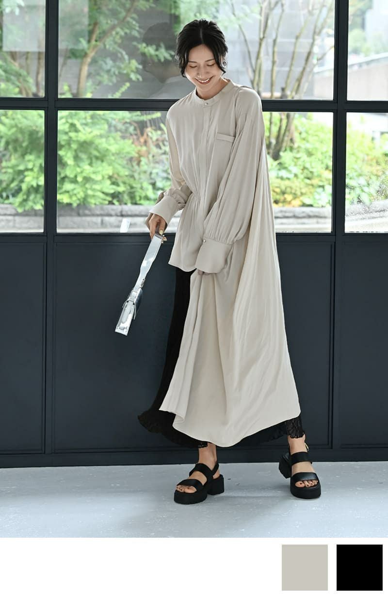 【BLK001】フレアシャツワンピース