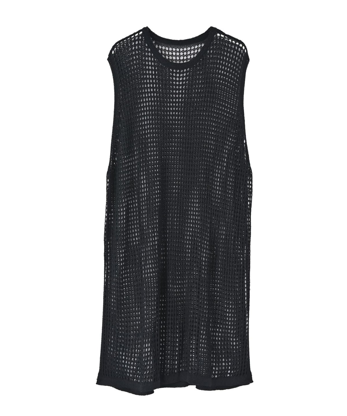 【BLK001】スリット入りメッシュニットワンピース