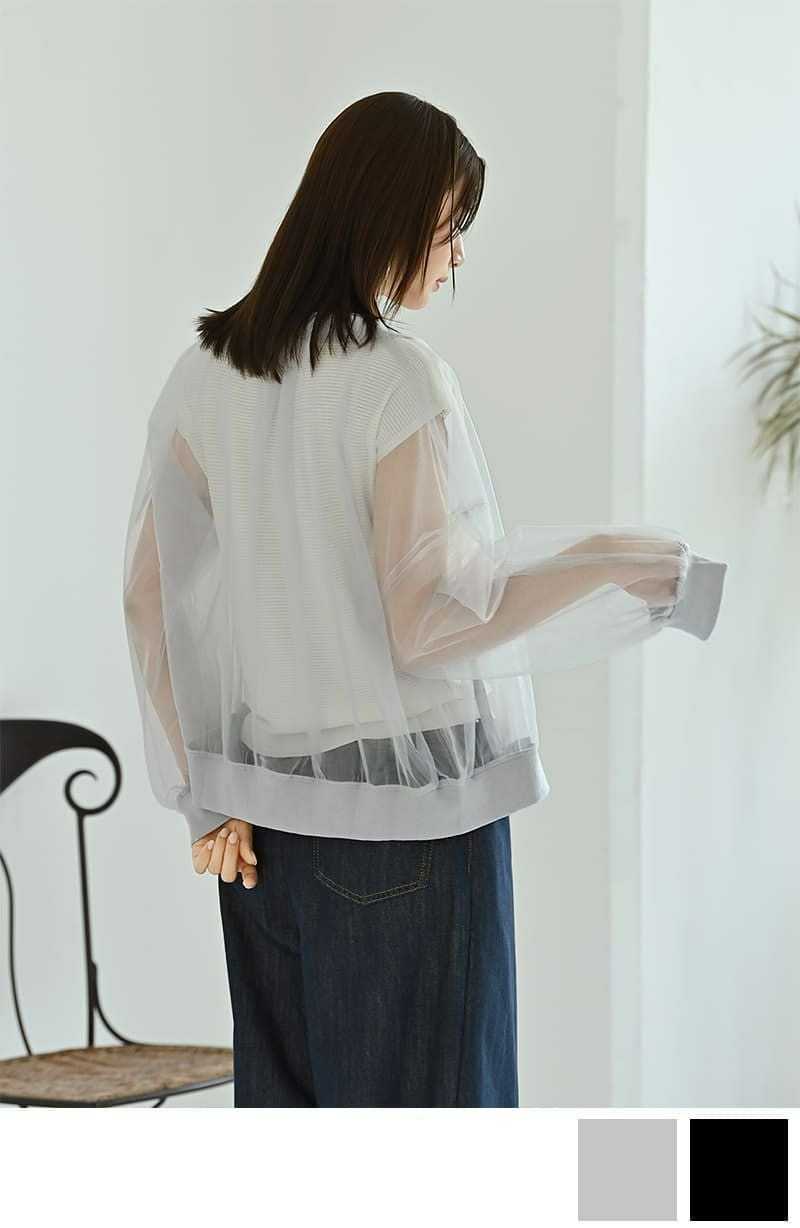 【BLK001】ジップアップシアーカーディガン
