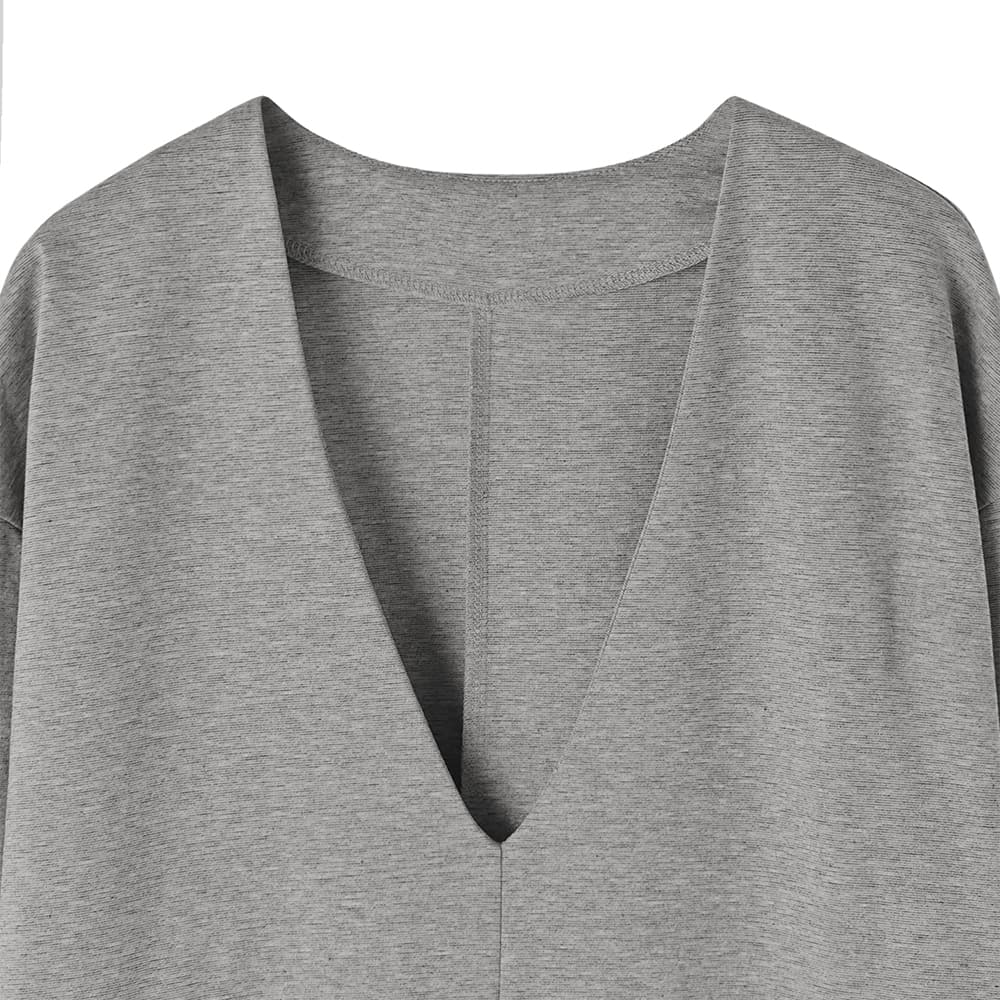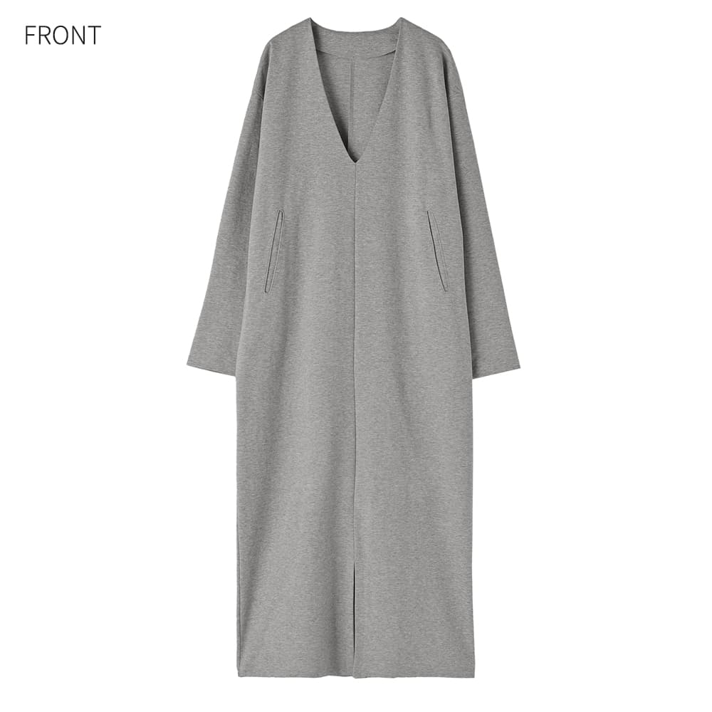 日本製ならではの縫製と生地質感が美しい、ディープな深さのVネックワンピース。シャープな角度の襟ぐりラインでスッキリと見え、スタイリッシュな印象の一枚です。