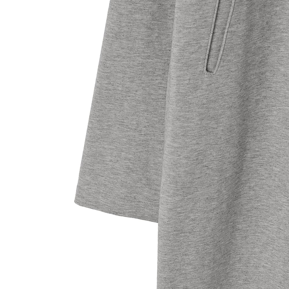 縦に配置したフロント両サイドポケットなど、縦ラインを強調してスッキリ見えする要素を駆使。ストンとして身体のラインを拾わない、頼もしいワンピースになっています。