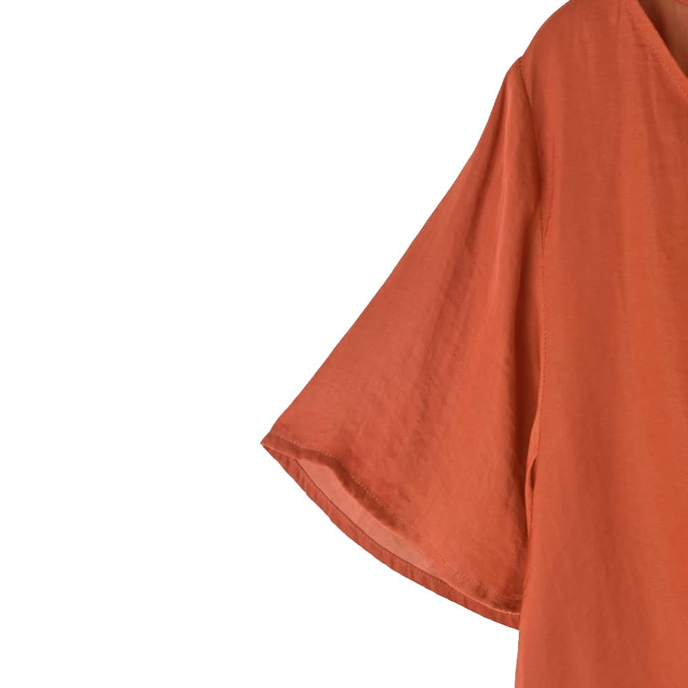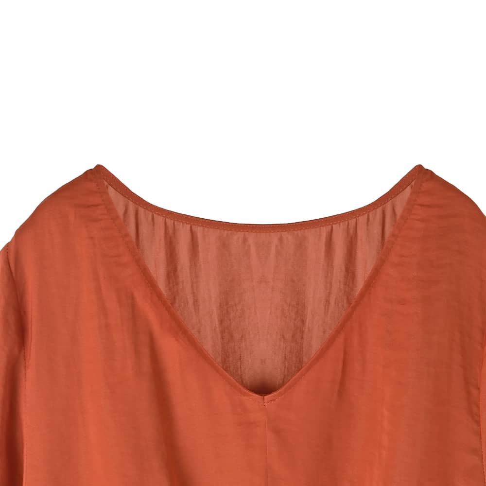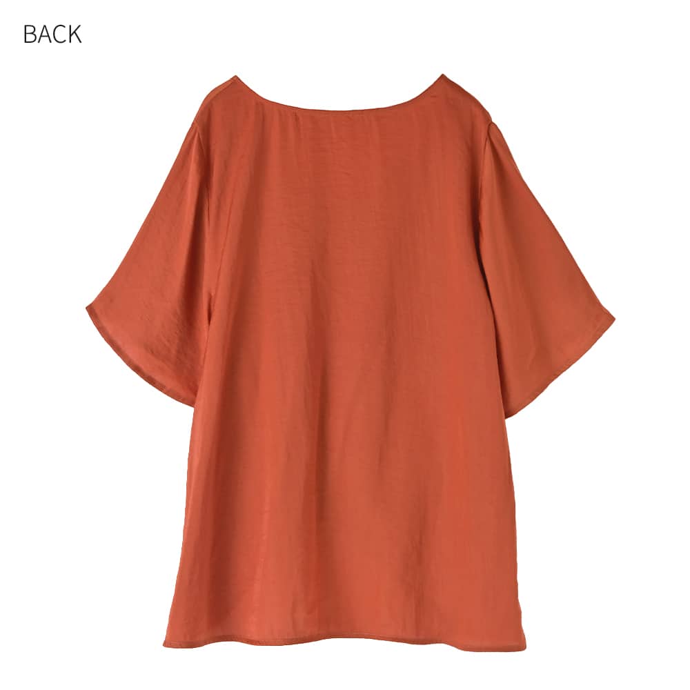 同じシリーズのパンツまたはワンピースと合わせて、素敵なセットアップが作れる半袖のプルオーバートップス。女性を美しく見せる為のコダワリがたくさん詰まった、どこにも無いデザインの一枚です。