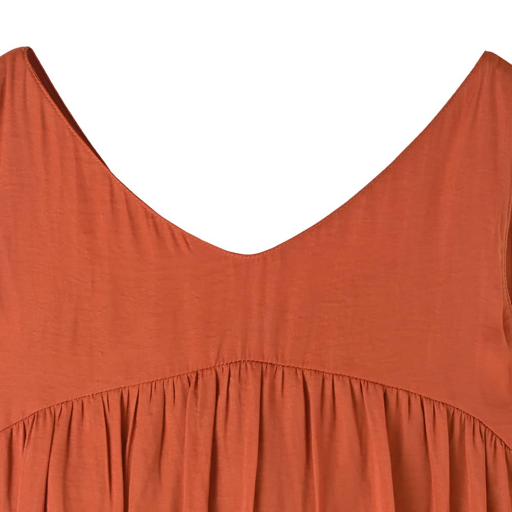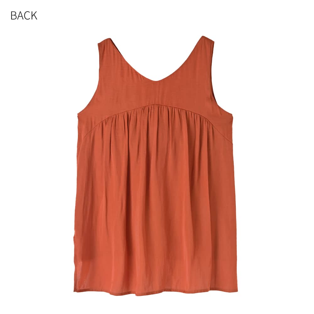 身長が高めでもヒップが隠れる、パンツスタイル時に嬉しいチュニック丈。そしてたっぷりと入ったギャザーが、見た目の可愛さと共に背中へのはり付きや肉感も散らしてくれるという、背面への備えも万全のデザインになっています。