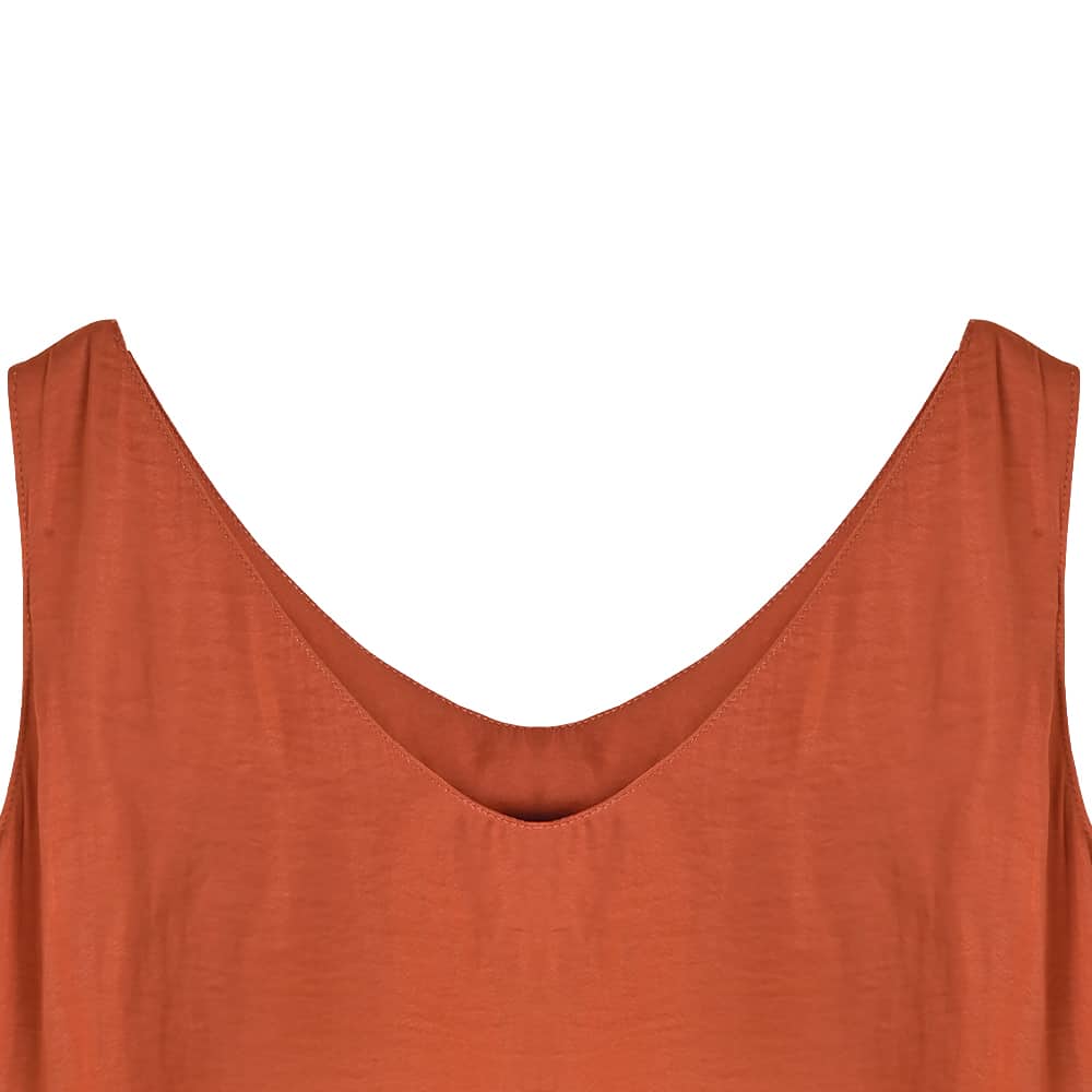 同じシリーズのパンツと合わせて、素敵なセットアップが作れるノースリーブトップス。取り外し可能な胸パッド入りで、ブラ無しで着れる優れものです。黒や白のシンプルなパンツを合わせる等、他の着こなしに活用するのも良いと思います。