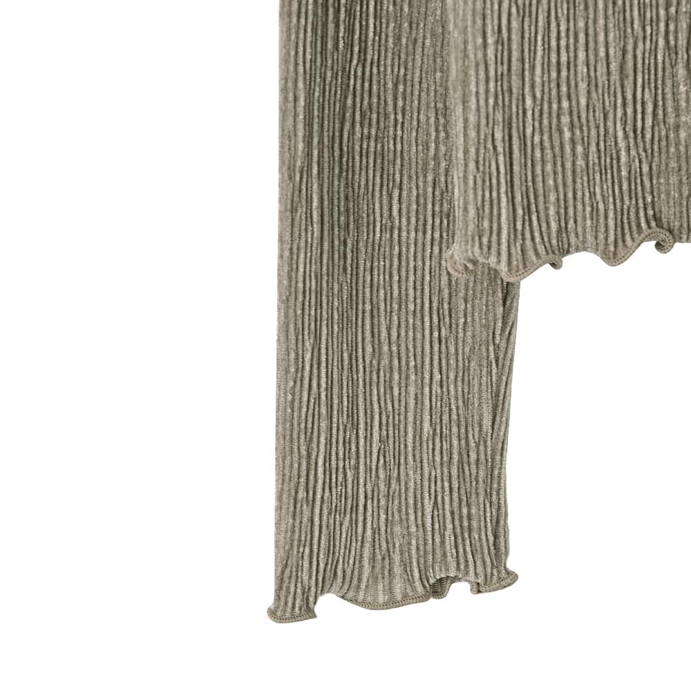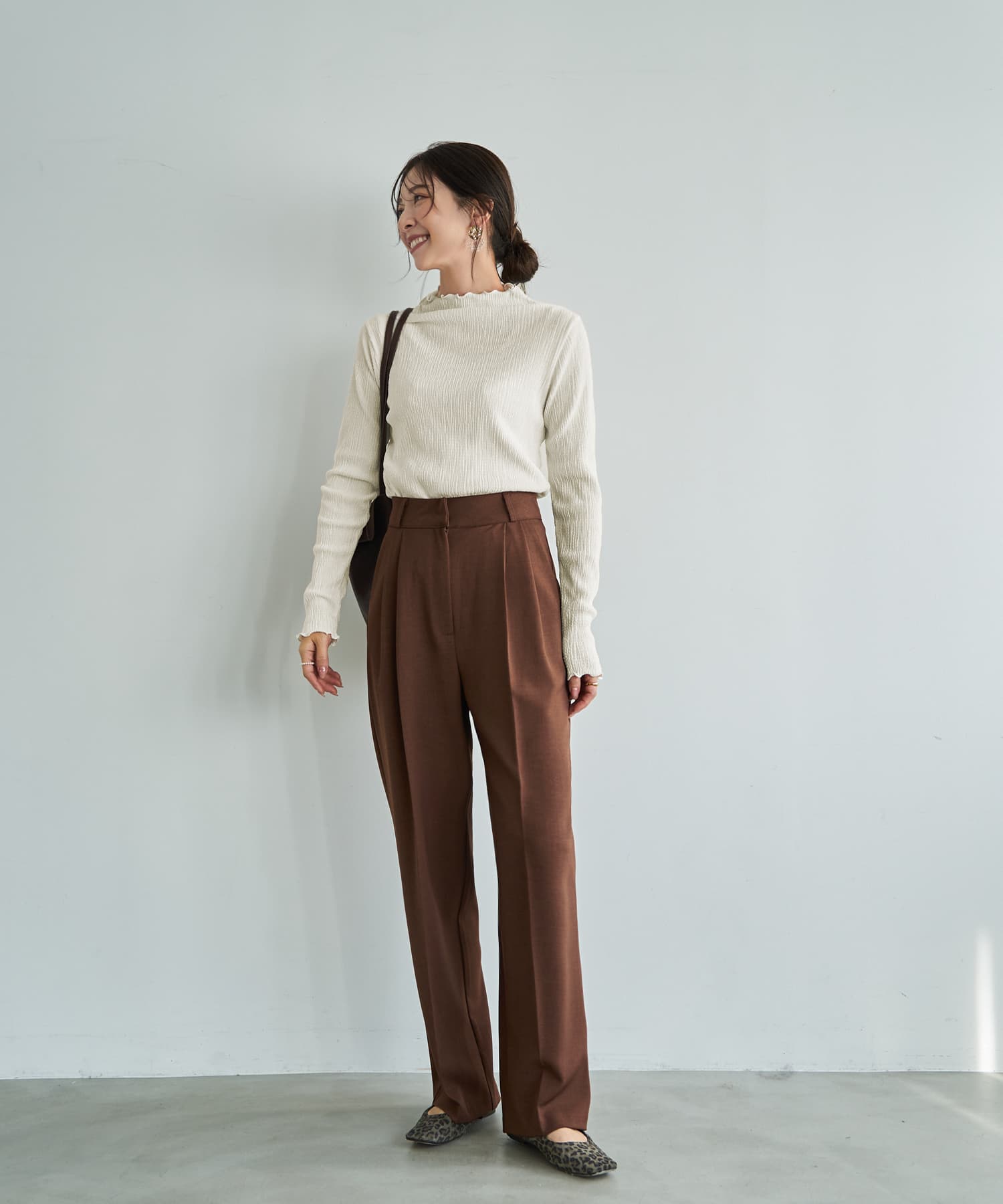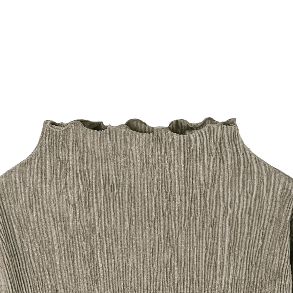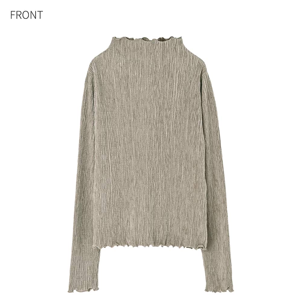 ボトルネック×メロウ処理×楊柳凹凸加工春先まで使える軽めでオシャレな素材感トレンドのベロアが洗練の雰囲気をくれる適度なゆとり感フォルムのカットソーtops◆12/11インスタライブご紹介商品◆アーカイブのご視聴はこちらから→【2025/12/11ライブ】【この商品の特徴】一枚で着てもカワイイし、ジャケットやカーディガン、サロペットなどのインナーにしても素敵な、柔らかいベロア生地のカットソートップス。全体的にゆったり感があり、裾をボトムスにインせずに着ても腹部周りがゆとりがあり、はり付かないようになっています。比較的シンプルな印象の中にたくさんの要素が詰まった、今っぽくて使いやすいトップスです。◆縦方向に凹凸状の模様感を持つ楊柳デザイン生地◆ラクなボトルネックで締め付け感ゼロ◆全体的によく伸びる生地◆やや薄手でエアリーな質感◆普通のインナー系カットソーよりは少し暖かい◆凹凸による肉感カバー効果あり◆ネックライン、裾、袖口の全ての端処理がメロウ◆今っぽい長めの袖丈◆裏面は肌離れの良いサラっと素材で快適【その他の仕様などの情報】◆着用時期:10-4月頃が目安◆サイズ感:ゆとりのあるサイズ感(Lサイズ体型にも対応)◆丈感:前は脚の付け根程度の丈感/背面はヒップが半分隠れる程度の長さ◆シルエット:ストレート◆首元:ボトルネック◆肩幅:広め◆アームホール:やや広め◆袖幅:やや広め◆袖丈:長袖(指先がちょこんと出る長さ)◆袖口:メロウ(よく伸縮します)◆袖のたくし上げ:可能◆厚み:やや薄手ながらも素材による暖かみあり◆柔らかさ:柔らかく、僅かなハリ感も共存◆肌触り:サラッとした感じ(裏面は非ベロア素材)◆着用ジワ:できにくい◆毛羽立ち:できにくい◆伸縮性:あり◆光沢感:微光沢◆透け感:なし(オフホワイトは僅かにあり)◆スリット:なし◆ボタンやファスナー:なし(かぶり着タイプ)◆手洗い:可能◆アイロン:不要◆スチーマー:使用OK【お色について】◆ブラック:定番的な通常のブラックですが、微光沢があるため暗い印象にはなりません。◆オフホワイト:僅かなクリーム味を持つ暖かみのあるホワイト。秋冬のお洋服に馴染みやすいお色です。◆グレージュ:グレーとベージュをブレンドし、赤味やイエロー味を消したニュアンスカラー。微光沢があるため普通のグレージュとは少し異なる雰囲気があり、普段はこっち系の色が苦手という方でも「着てみたら意外とこっち!」と気に入る方が多数いらっしゃるお色です。落ち着きと品の良さもあり洗練されています。【SNS用ハッシュタグ】#236051楊柳ベロア端っこメロウトップス(このハッシュタグでInstagramなどSNS内で検索をしますと、こちらをお持ちのお客様のご投稿があれば、簡単に見つけてご覧いただくことができます)
