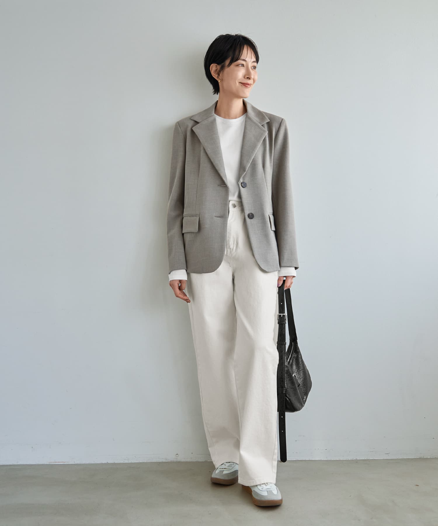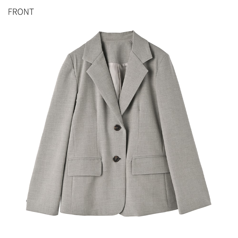 品のある生地の質感が素敵な、四角めシルエットのテーラードジャケット。余計な大きさや長さといったものが無く、適度な余裕を持ちつつジャストなサイズ感でスッキリと着ることができます。