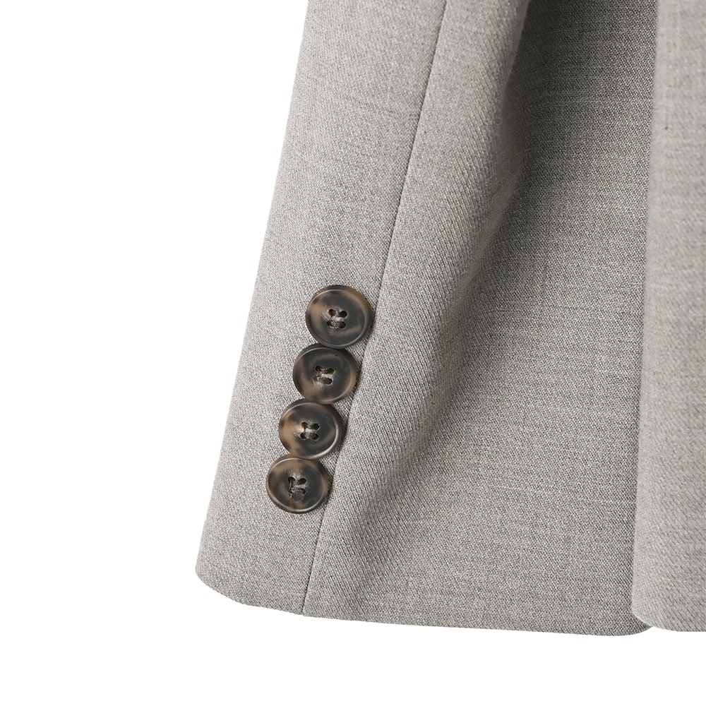その生地には高級感があり、織り組織の中に織り目の細かさや密度の濃さといったものを持つのが特徴。そのためこの価格帯のジャケットでは出せない雰囲気があり、例えばブラックは一般的な黒ジャケットよりも黒の色味が深く入っていて、気品を感じる色合いになっています。