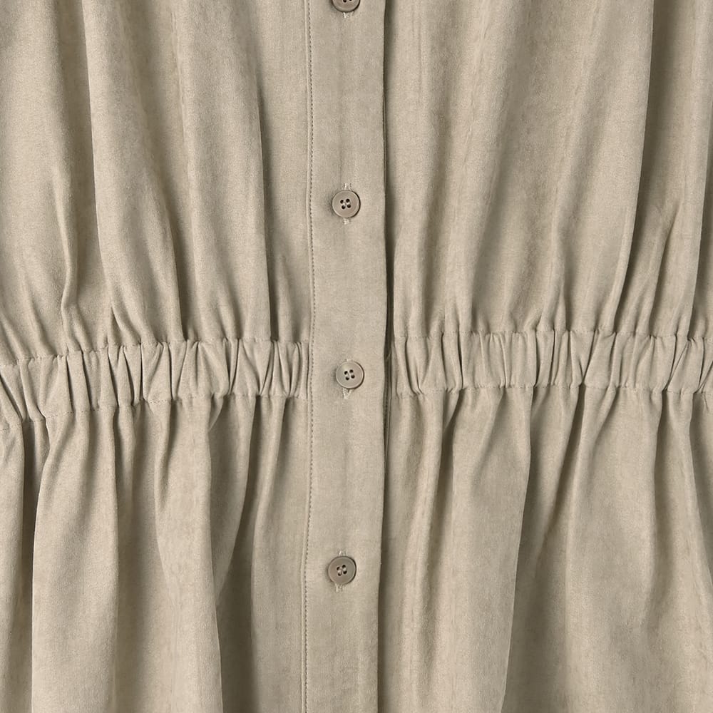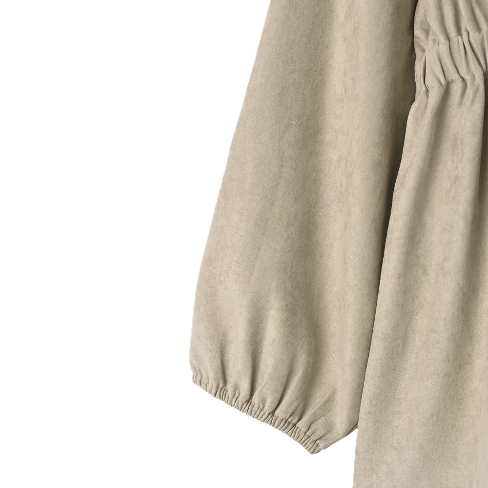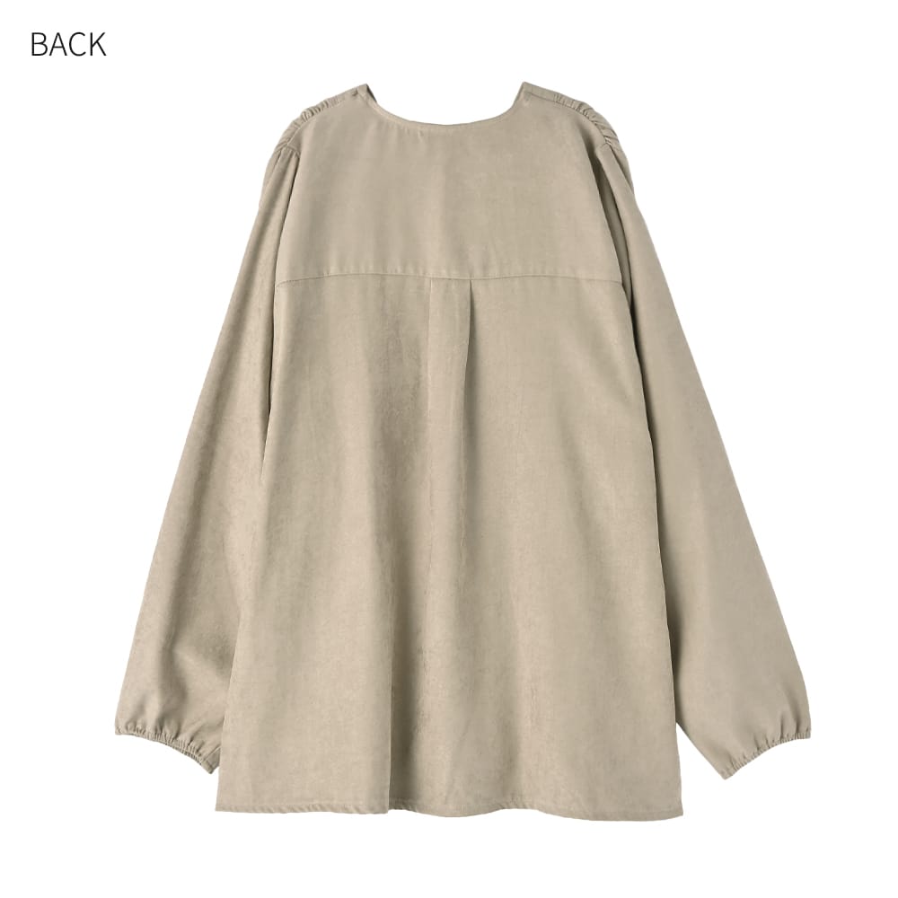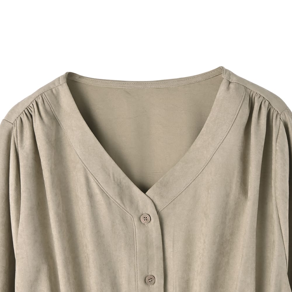 ◆服飾業界ではピーチスキンと呼ばれる、桃の表皮のように抵抗感のある質感が特徴的なオシャレ生地。フェイクスエードを薄く・なめらかに・柔らかくしたような質感で、普通のブラウス生地よりはしっかりとしています。