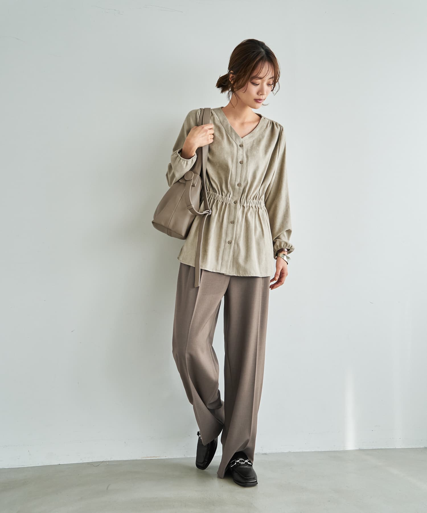 【LUXE】ピーチスキンウエストマークギャザーブラウス
