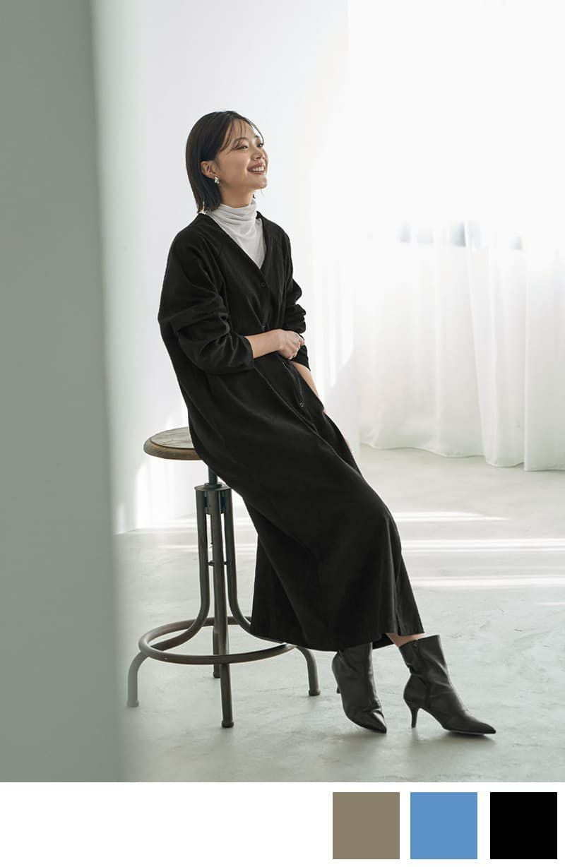 ライトコーデュロイVネックワンピース