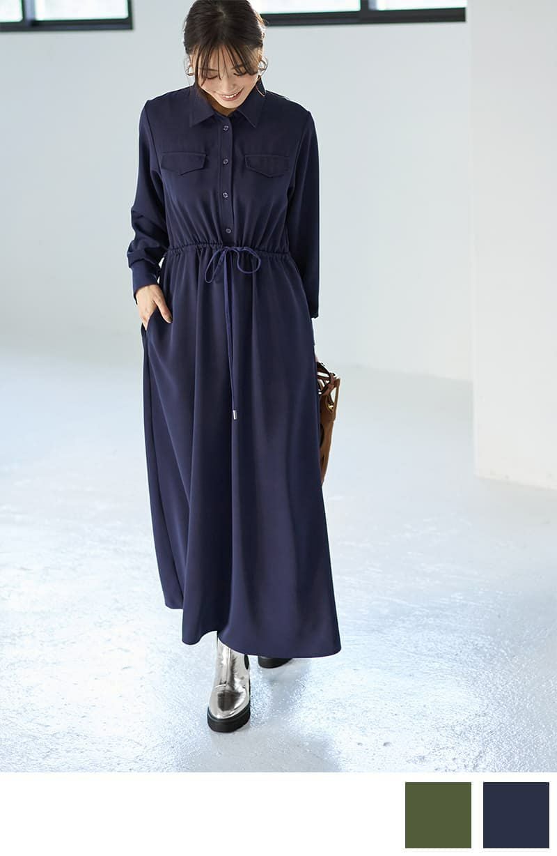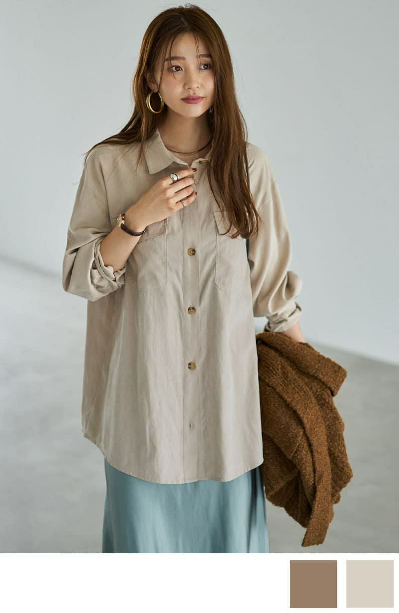 【袖口がゴムで便利な】微シアー微光沢シャツ
