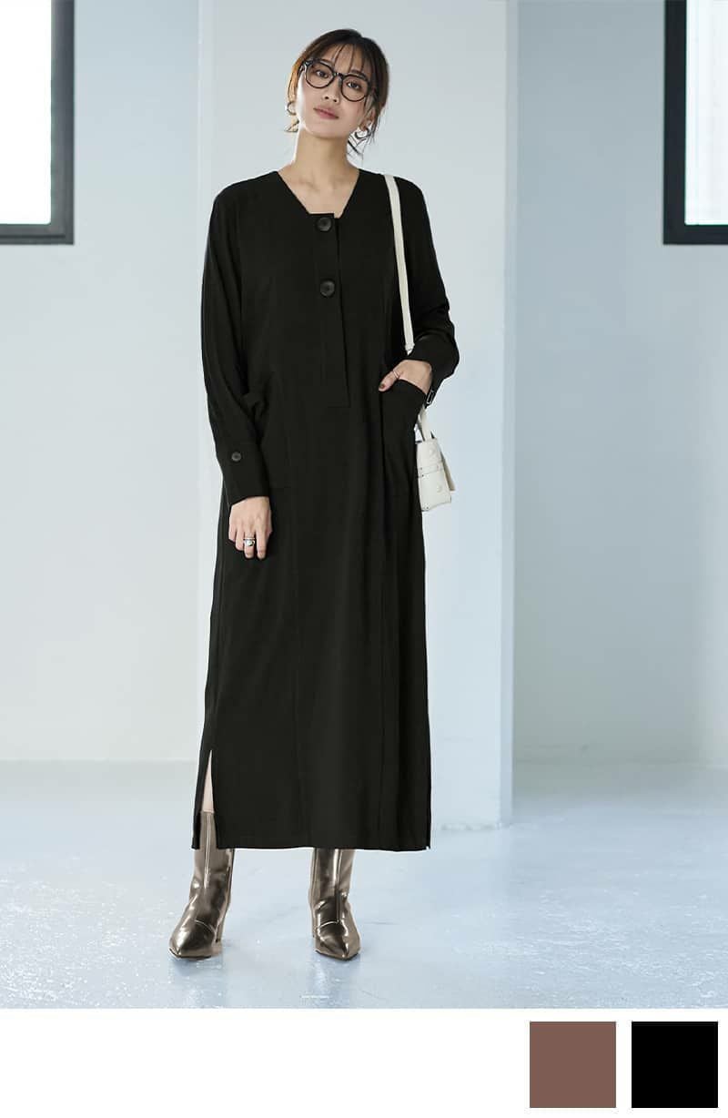 フロント2ボタンジョーゼットワンピース