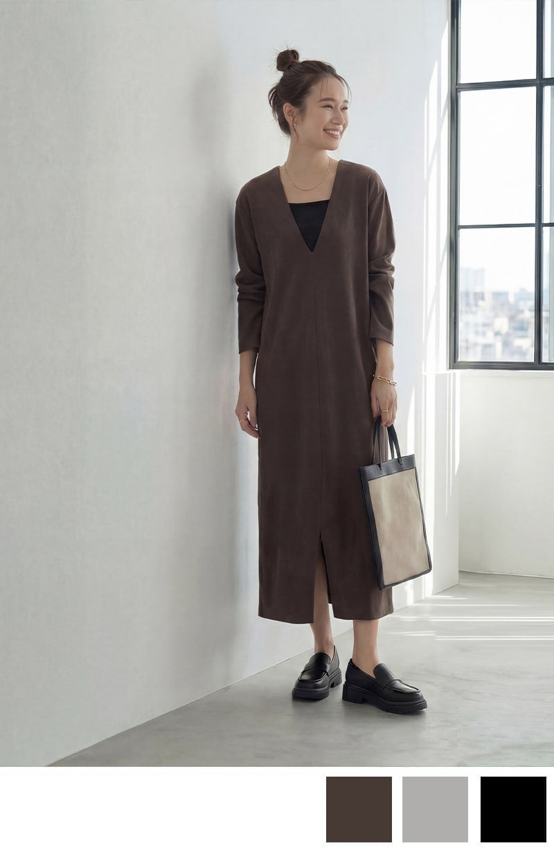 【Made in JAPAN】シルキーポンチ深Vワンピース