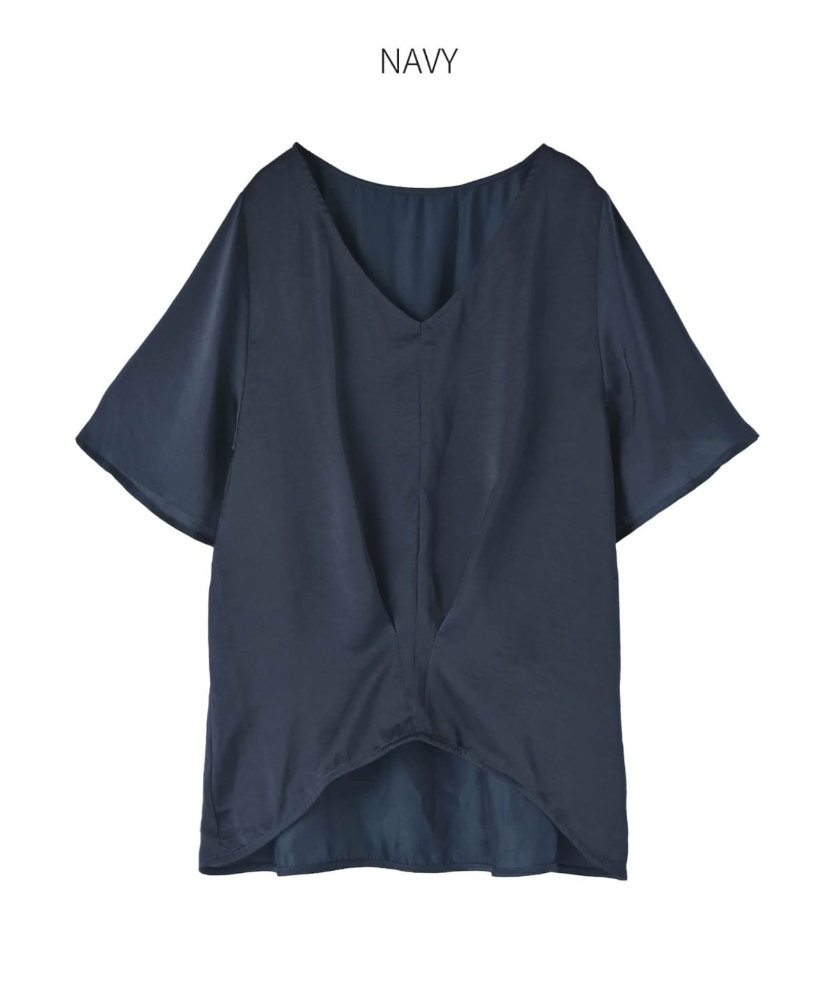 ジャケットの中に良い首開きとろみリブ半袖カットソー
