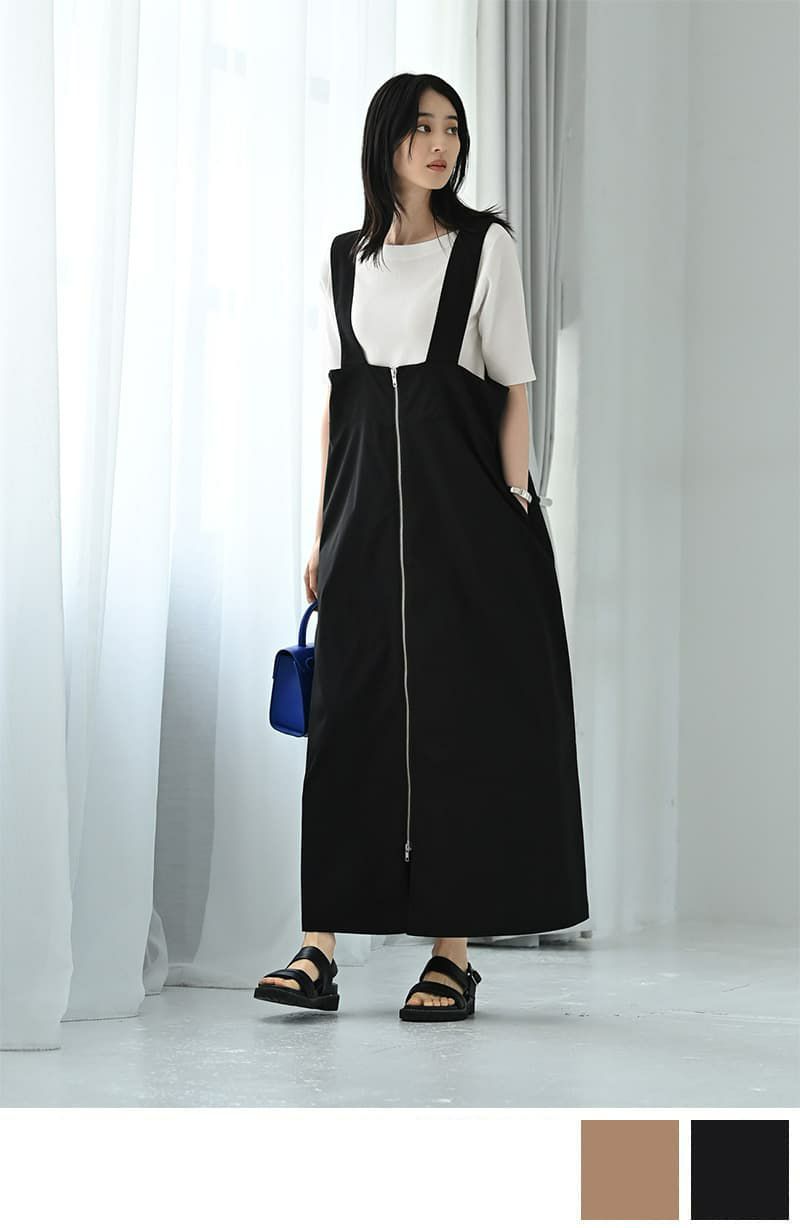 【BLK001】アシンメトリー切り替えシャツワンピース