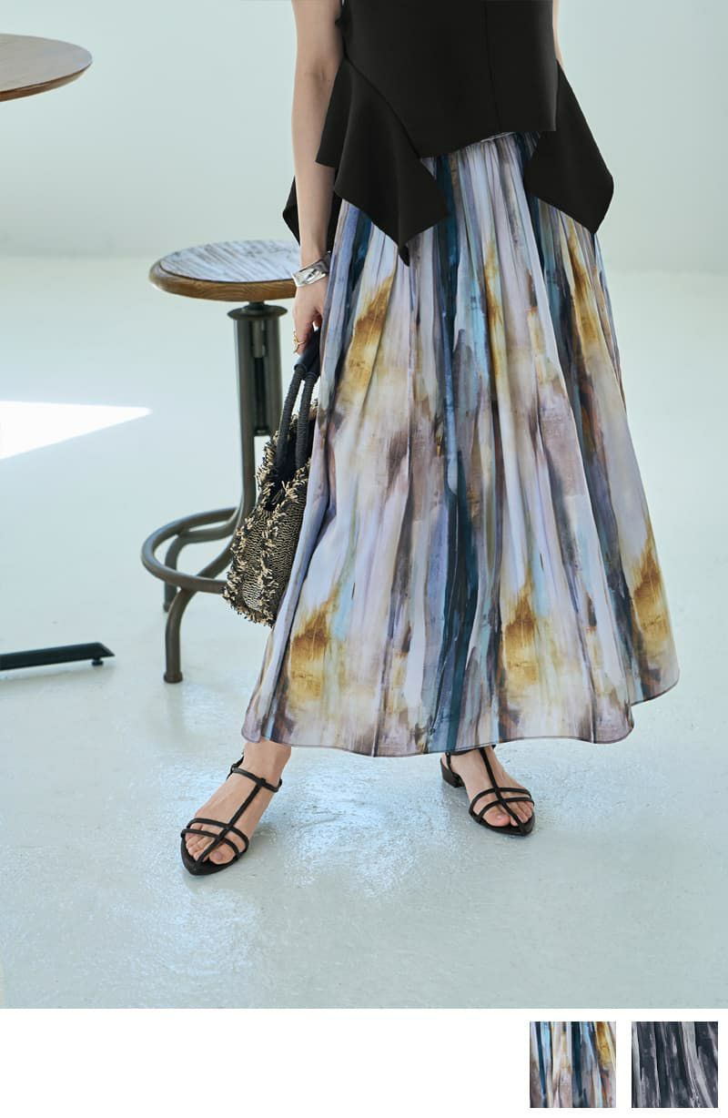 水彩ストライプ柄フェードアウトプリーツスカート