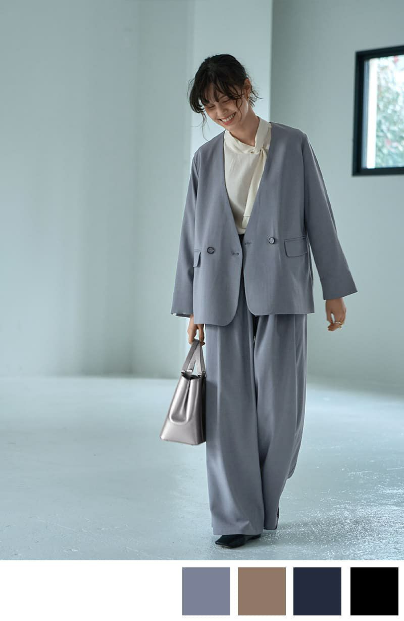 【Made in JAPAN】Aラインノーカラージップ ジャケット