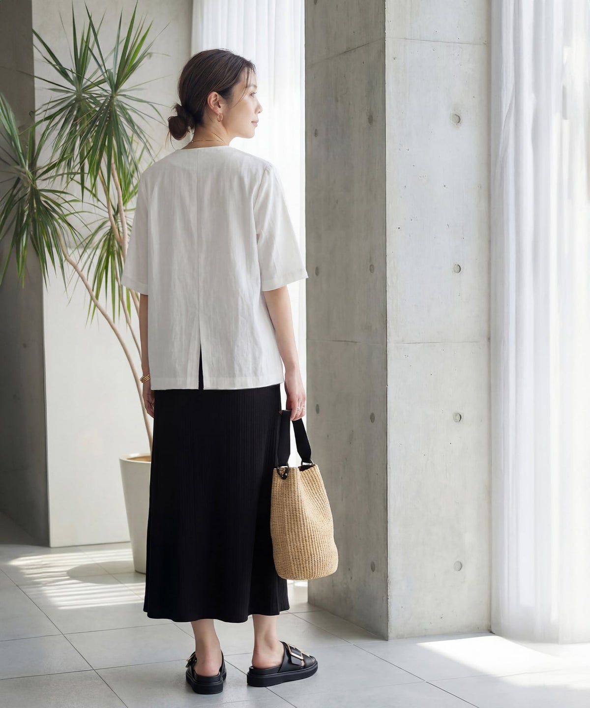 カバー効果抜群のマキシ丈ナロースカート