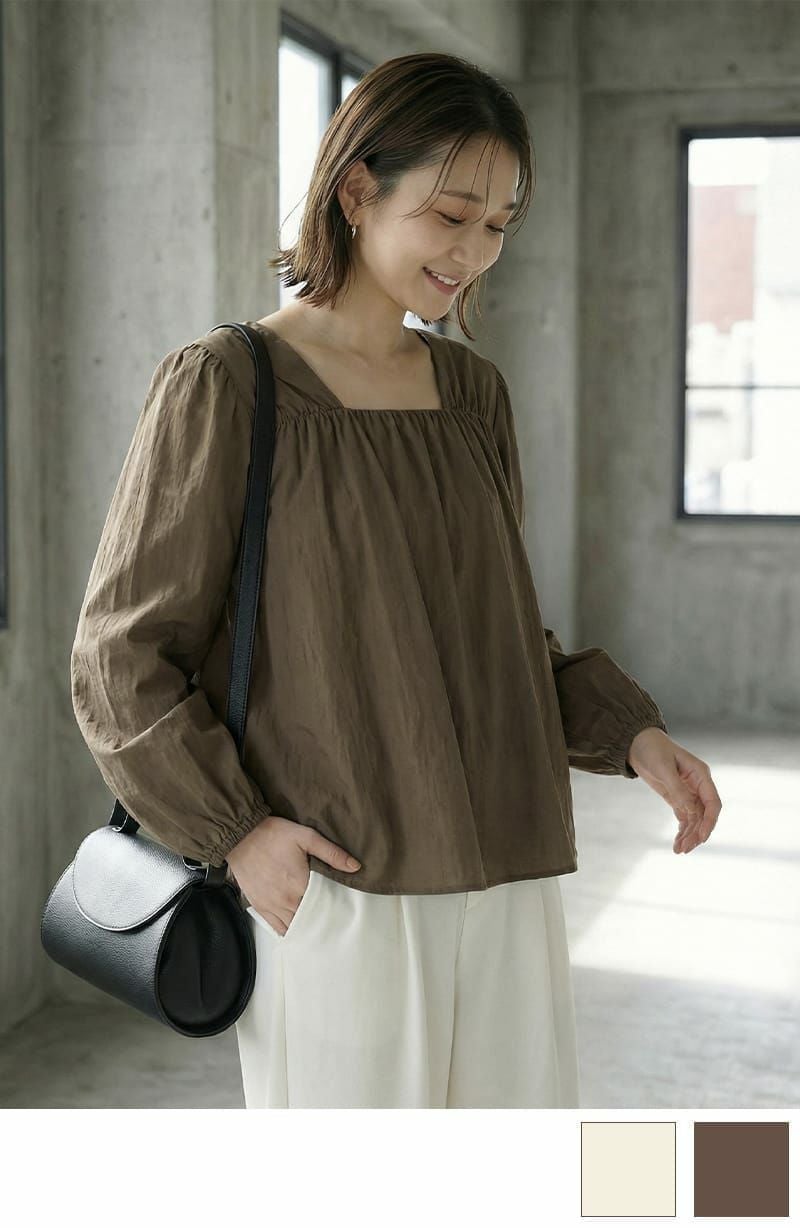 他の画像を見る 販売期間 2026/01/21 19:00 〜 再入荷 【OUTLET】【LUXE】デコルテスクエアギャザーブラウス 通常価格 ¥ 11,000 のところ 通常価格 ¥ 5,900 税込