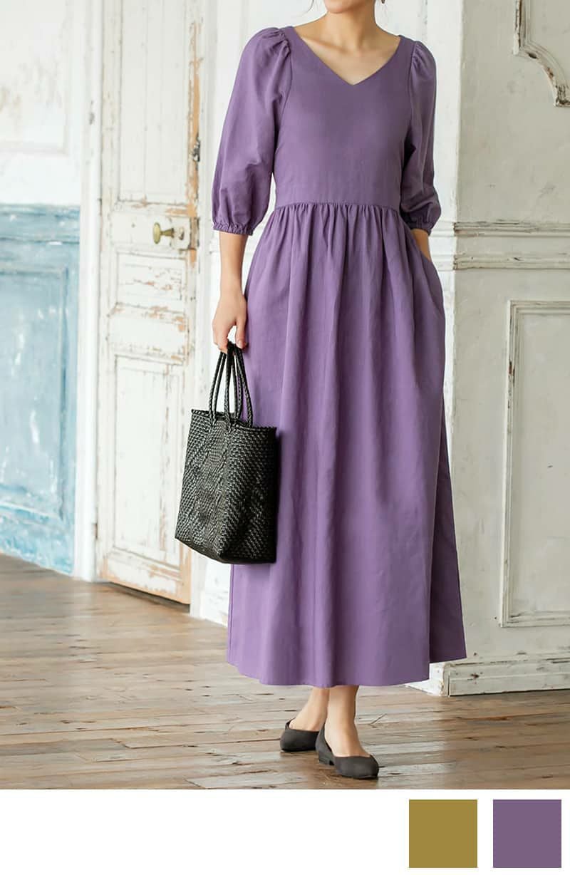 【OUTLET】綿麻ボリュームスリーブワンピース