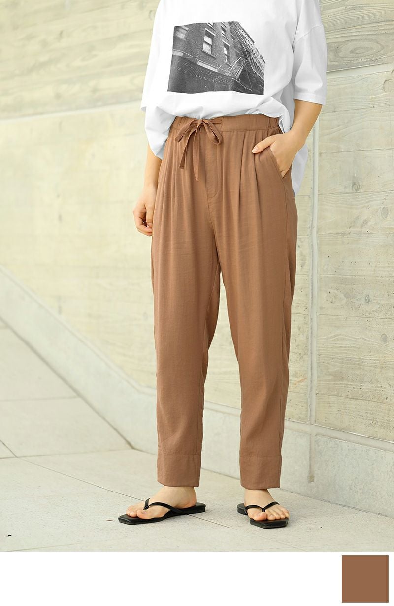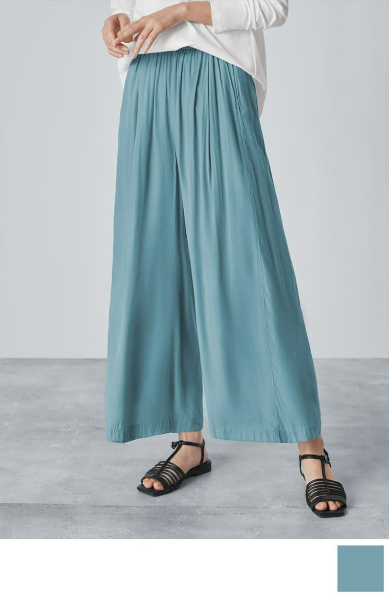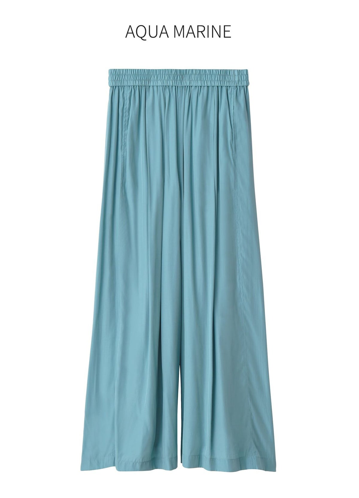 【OUTLET】質感加工サテンギャザーワイドパンツ