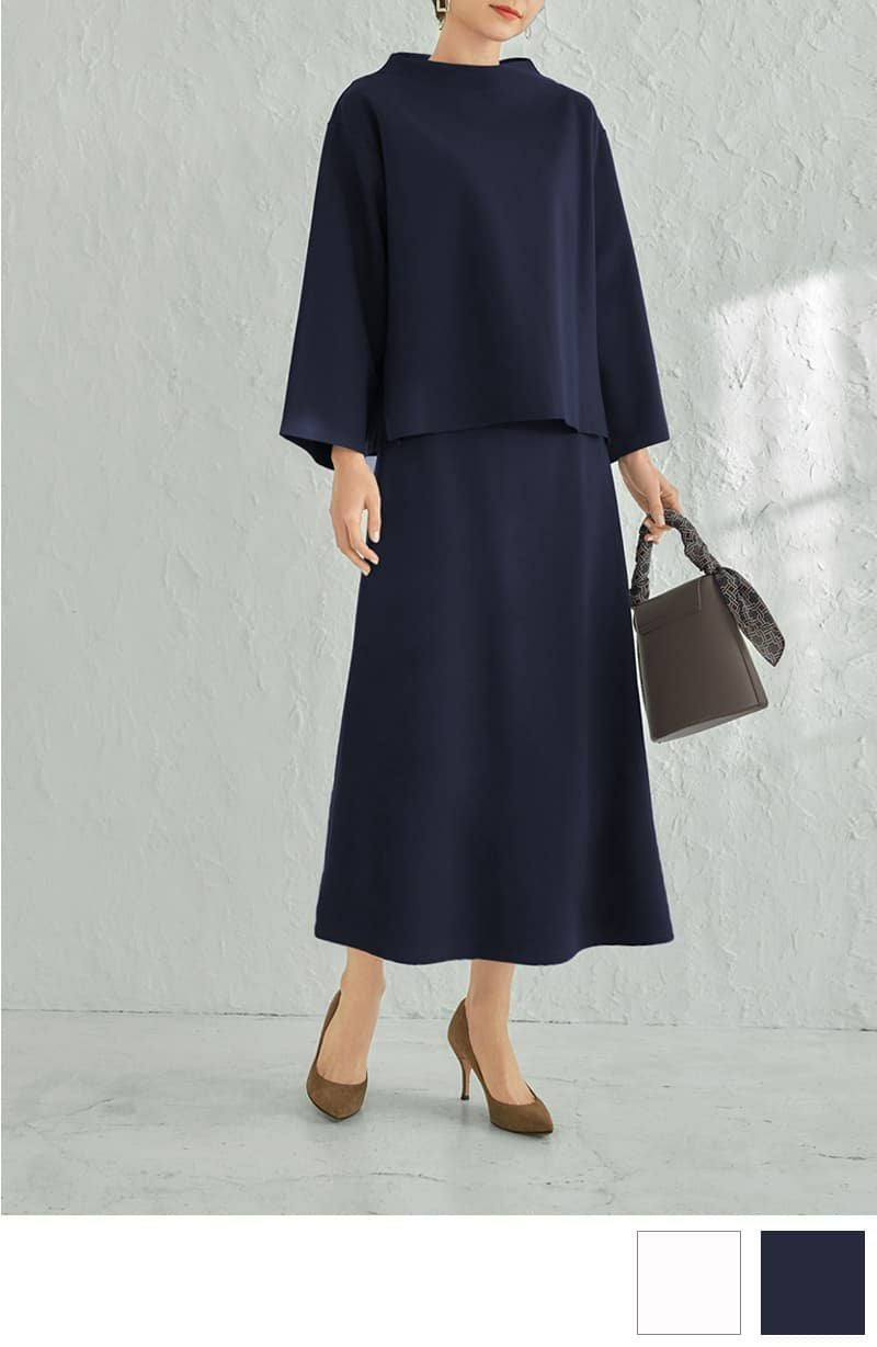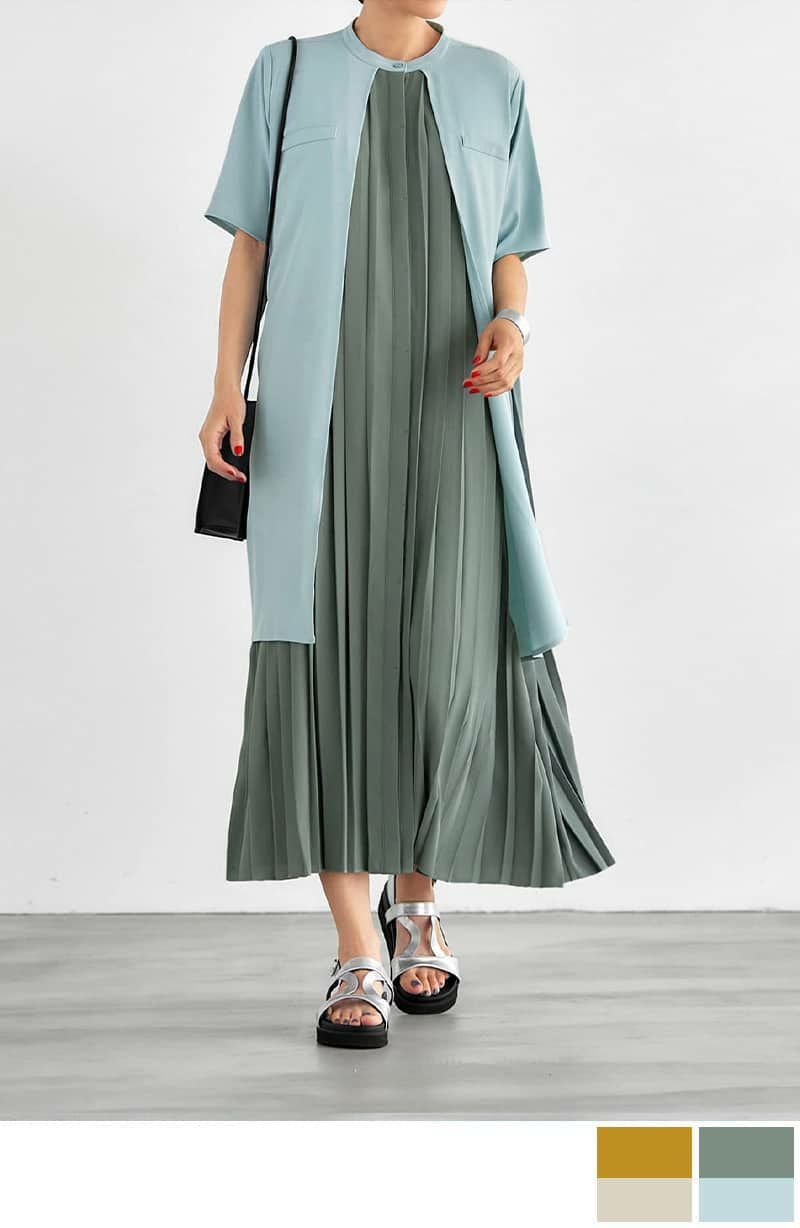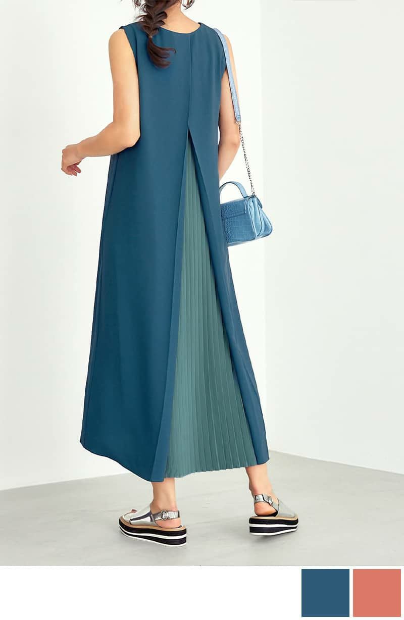 【OUTLET】【LUXE】配色レイヤードプリーツワンピース