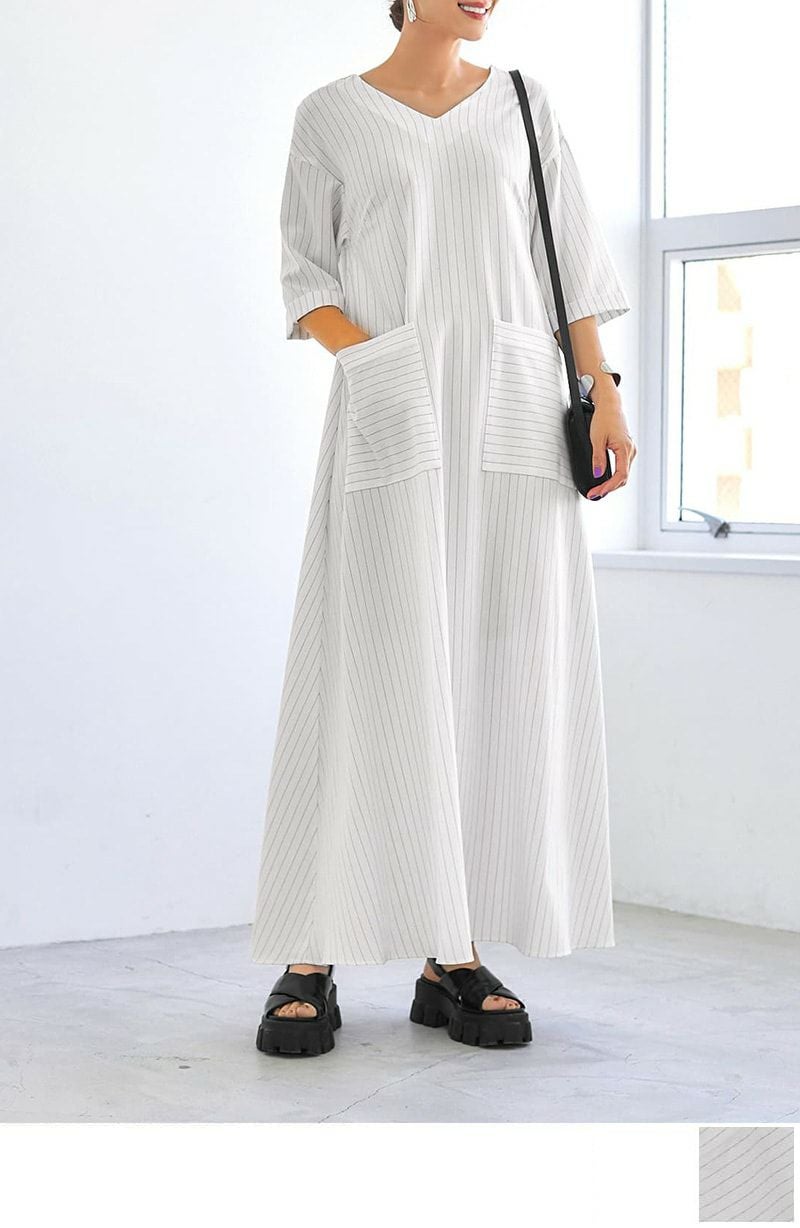 【OUTLET】ピンストライプ柄ポケットワンピース