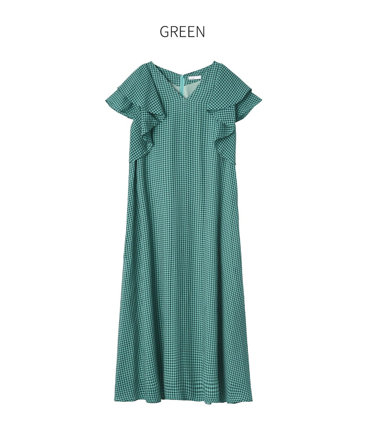 【OUTLET】チェック柄ダブルフリルスリーブワンピース