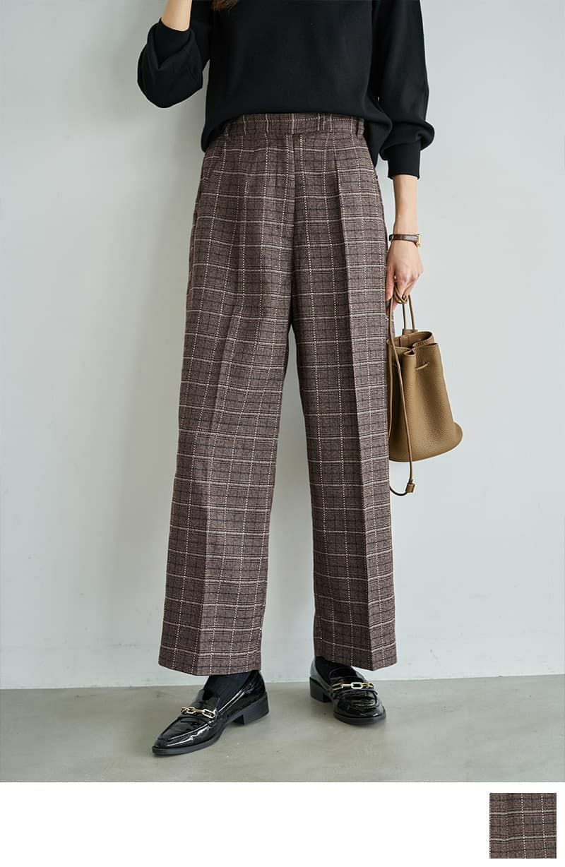 【LUXE】グレンチェック柄プリーツ切替ワンピース