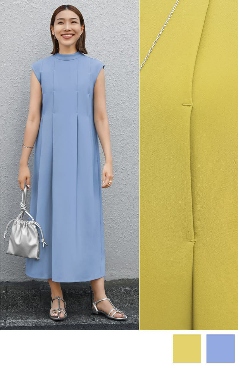 【OUTLET】【LUXE】配色レイヤードプリーツワンピース