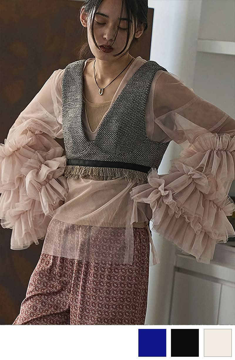 【MARJOUR】[Rokusyo]BUST LINE SHEER BLOUSE