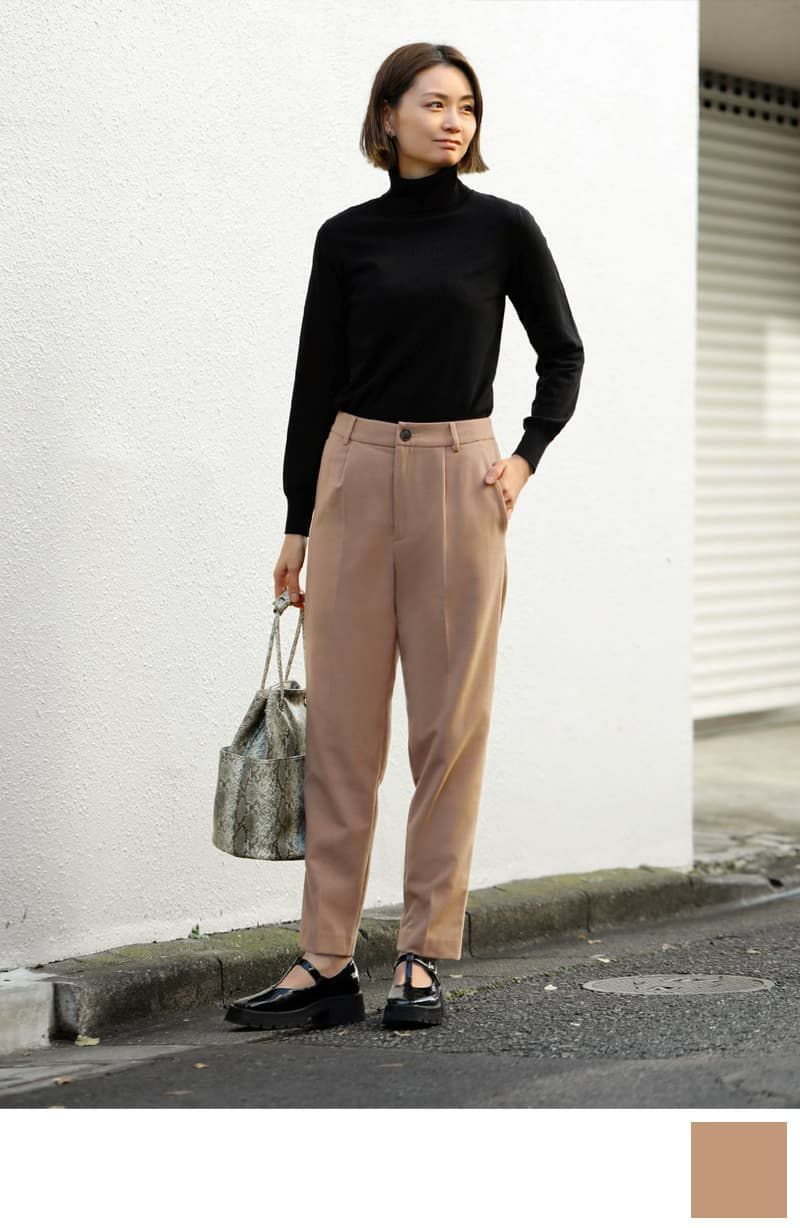【OUTLET】【着丈96cm】厚生地タックテーパードパンツ