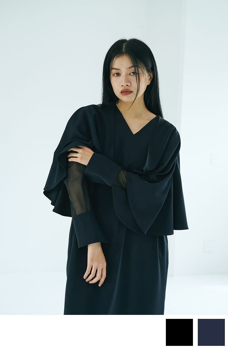 【OUTLET】ボリュームチュール袖ロングニットワンピース