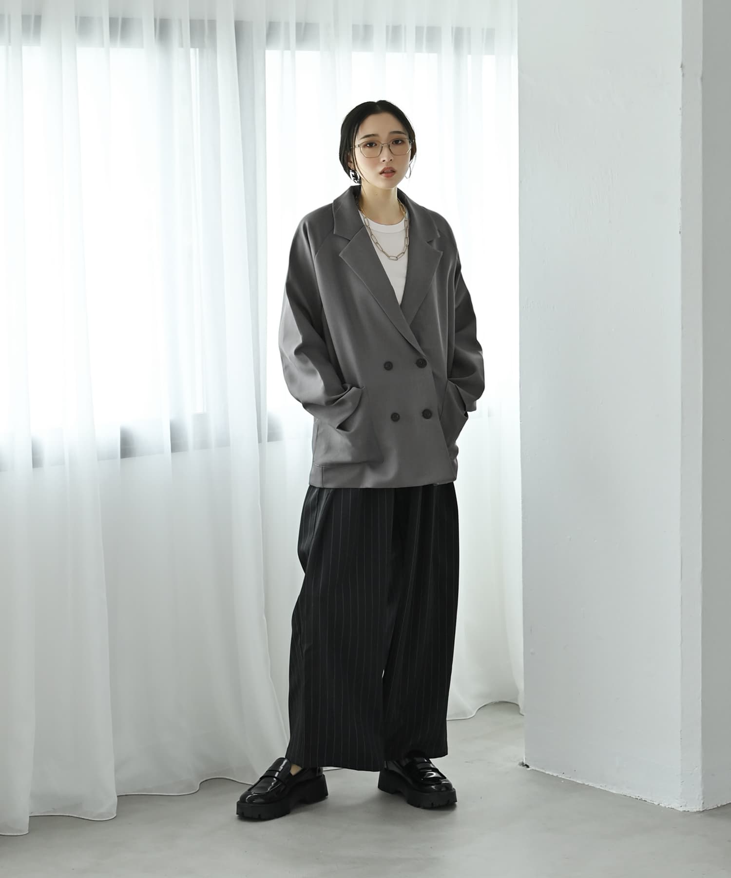 =メンズライクな抜け感をまとう、ビッグダブルテーラードジャケット=
