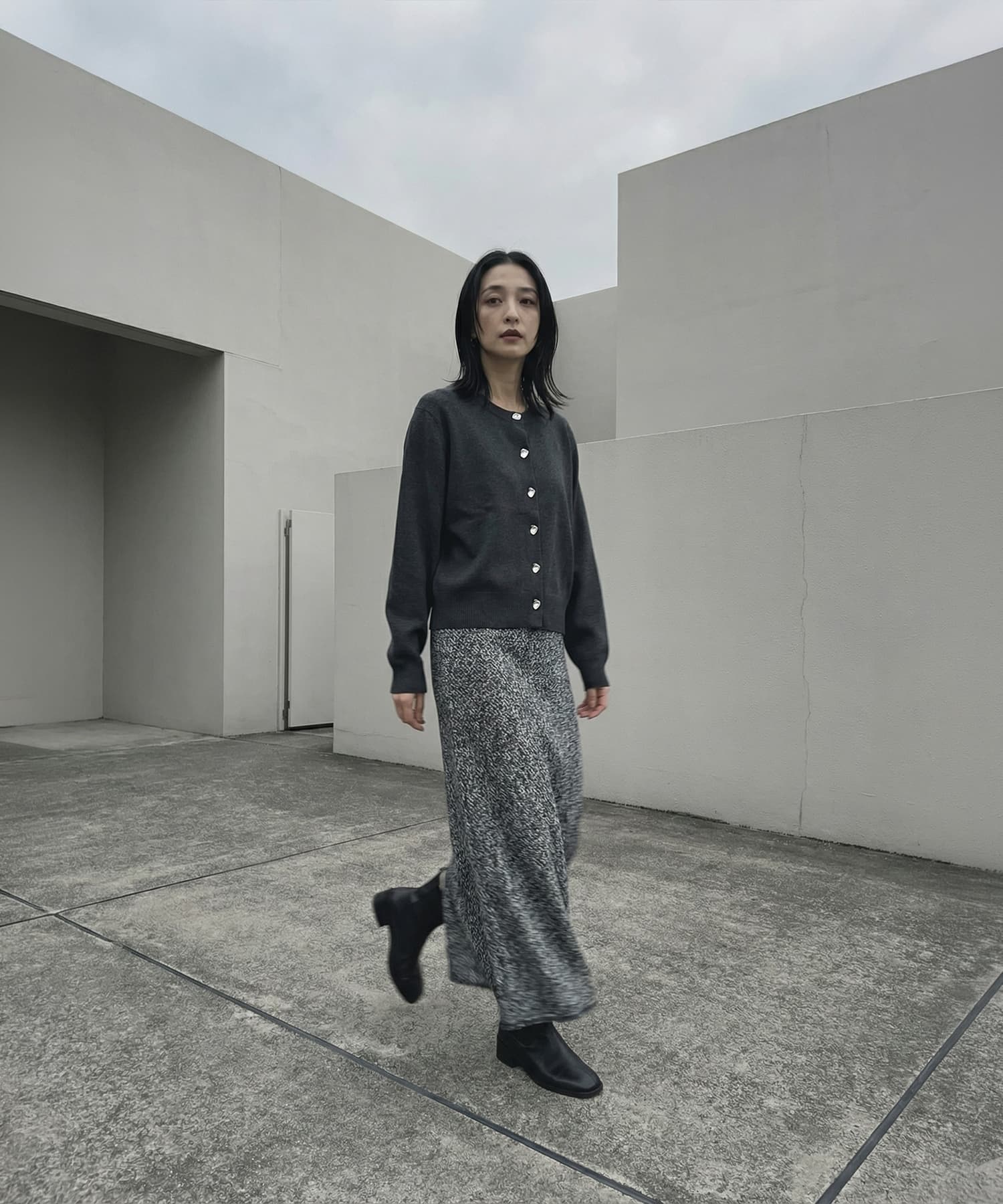 抜け感と端正さを、バランスよく。大人のためのニュアンス釦カーディガン。■ Designミニマルなシルエットに、ニュアンスボタンが映える一枚。有機的なフォルムのボタンが、シンプルな中にさりげない個性をプラスします。コンパクトすぎずルーズすぎない絶妙なサイズ感で、高身長の方でもバランスよく着用可能。一枚でも羽織りでも使える汎用性の高さも魅力です。■ Fabricリサイクルポリエステルを使用した軽やかな素材。さらりとした肌触りでロングシーズン活躍します。程よいハリ感があり、シルエットをきれいにキープ。デイリーに扱いやすいのもポイントです。■ Coordinate・スラックスと合わせてクリーンに・ワイドパンツで抜け感のある大人カジュアルに・ワンピースに羽織ってきちんと感をプラスシンプルなのに、どこか違う。「ベーシックを更新したい」大人にちょうどいい一枚です。===================================裏地:なし透け感:なし光沢感:なし伸縮:ありケア方法:手洗い推奨===================================■ Noticeこちらは海外縫製商品となります。多少の個体差が生じる場合がございますが、品質基準を満たした良品のみをお届けしております。