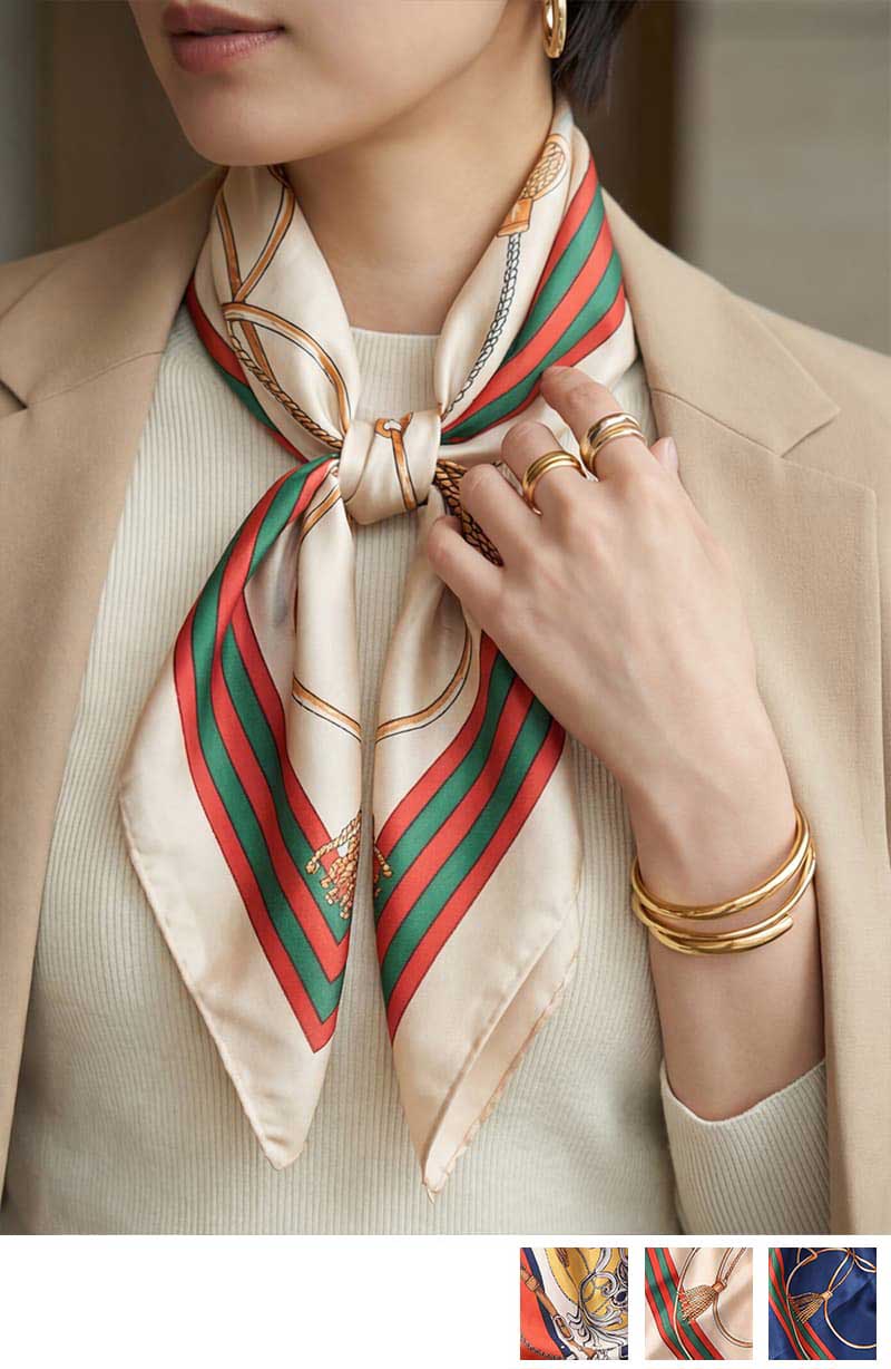 他の画像を見る COMING SOON 販売期間 2026/04/13 19:00 〜 24H限定10%ポイントアップ対象商品 yupacket 【DELI by】チェーンモチーフスクエア大判スカーフ 通常価格 ¥ 3,500 税込